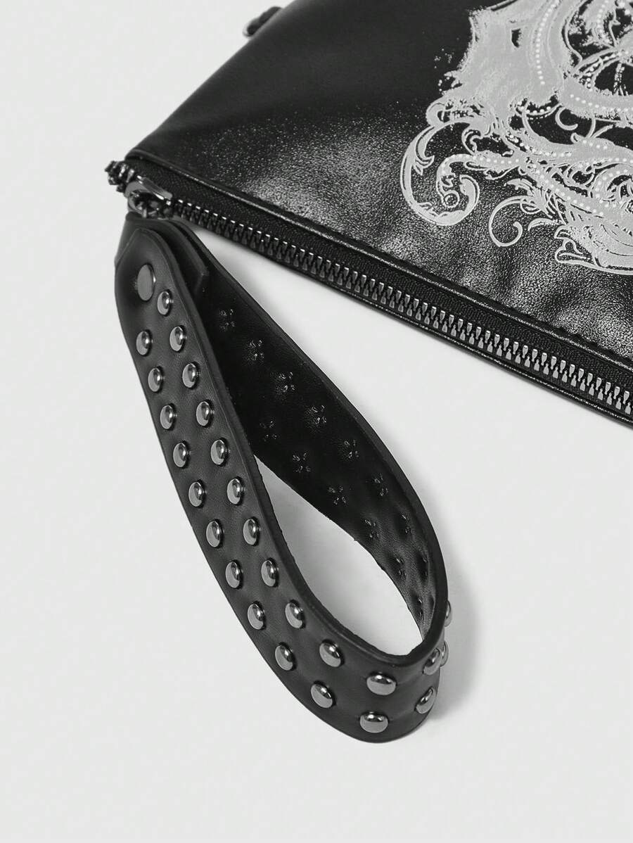 Goth 1pc Women's Heart & Cross Print Clutch Bag With Rivet Decor