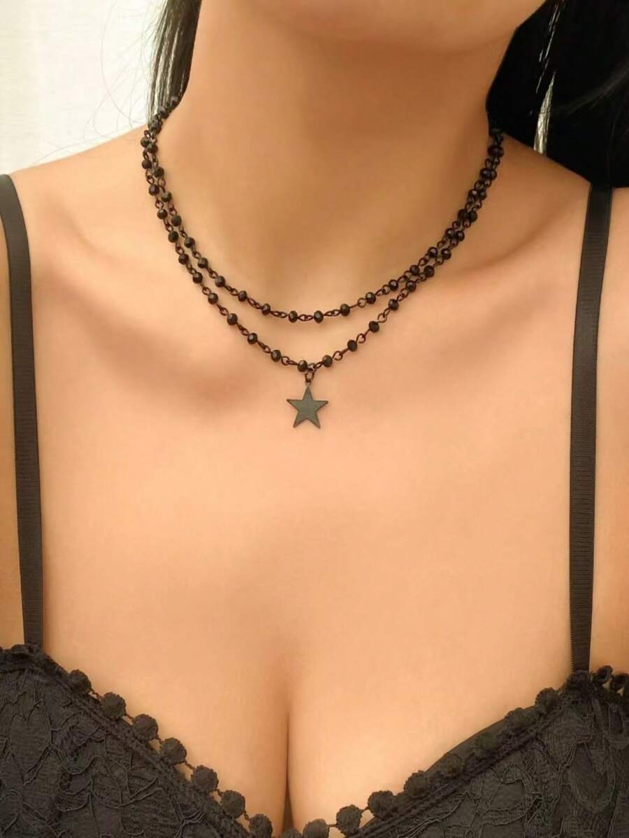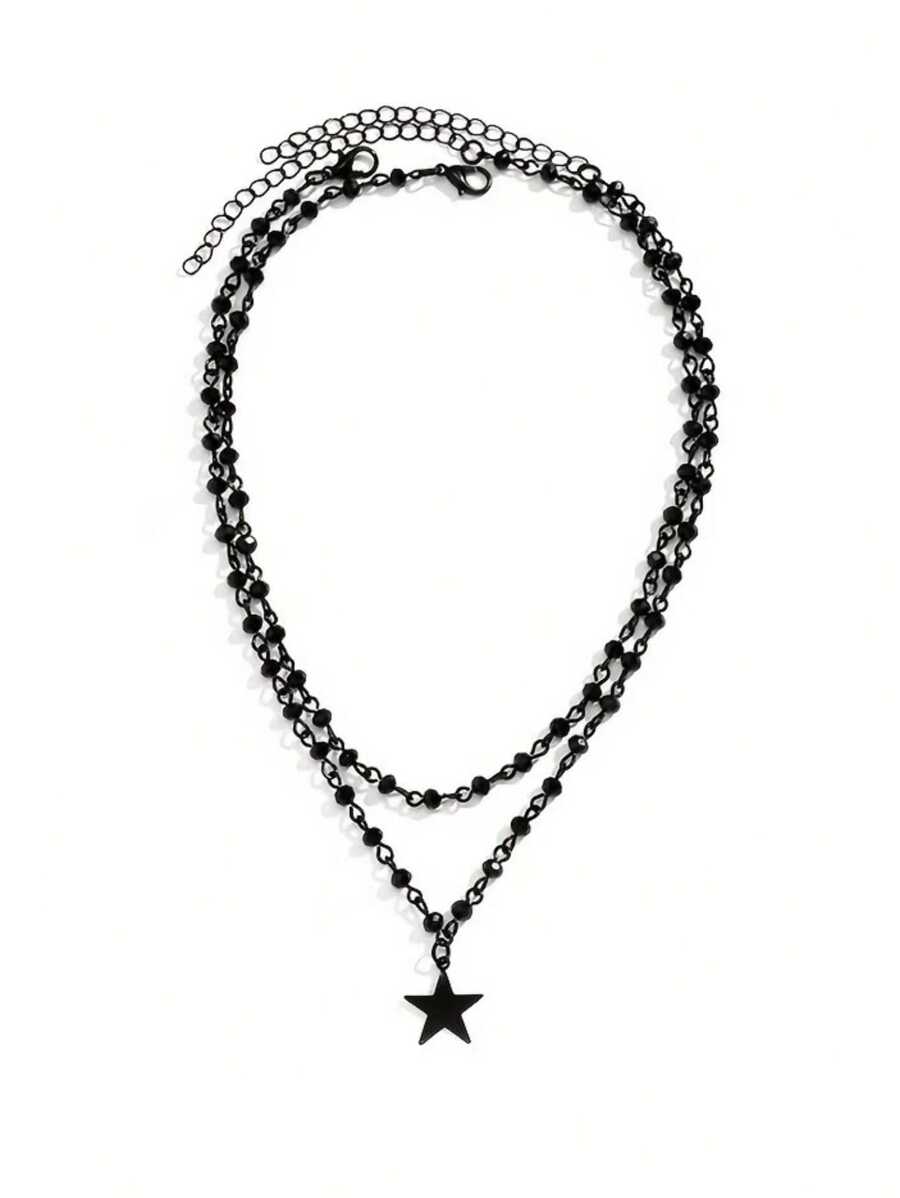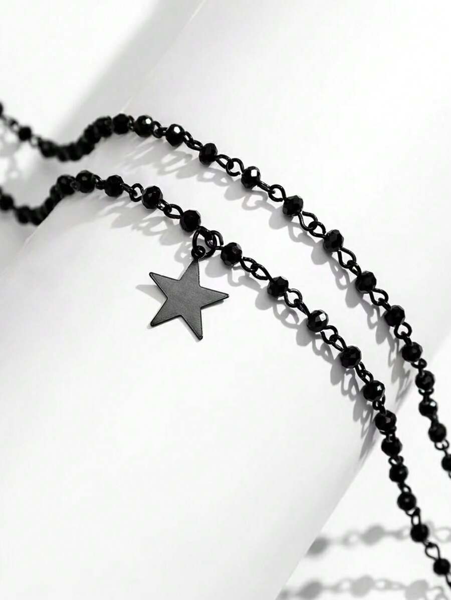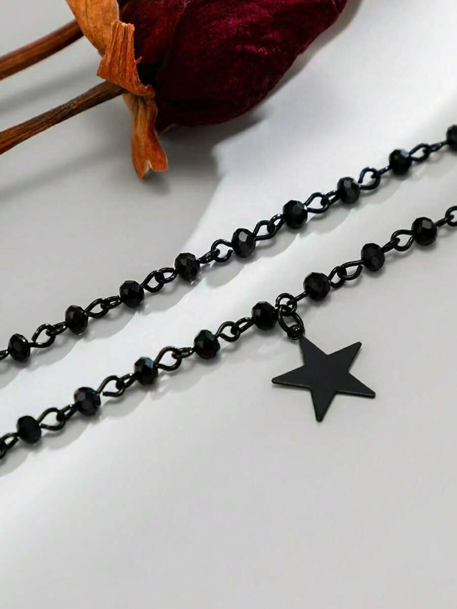 Goth 2pcs Dark Punk Style Star Pendant Necklace Set