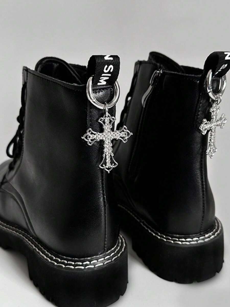 Goth 2pcs/Set Y2K Fashion Faux Crystal Cross Pendant Shoe, Boot, Bag Decoration Accessories