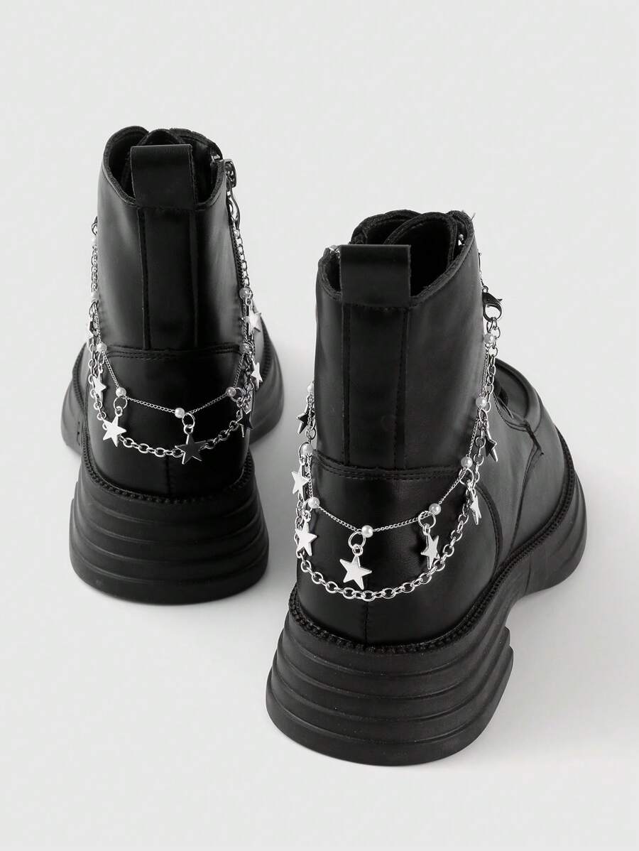 Goth 2pcs Versatile Fashionable Hollow Star Faux Pearl Pendant With Adjustable Lobster Clasp, Stylish Shoe/Accessory Decor, Suitable For Women, Gift For Any Occasion