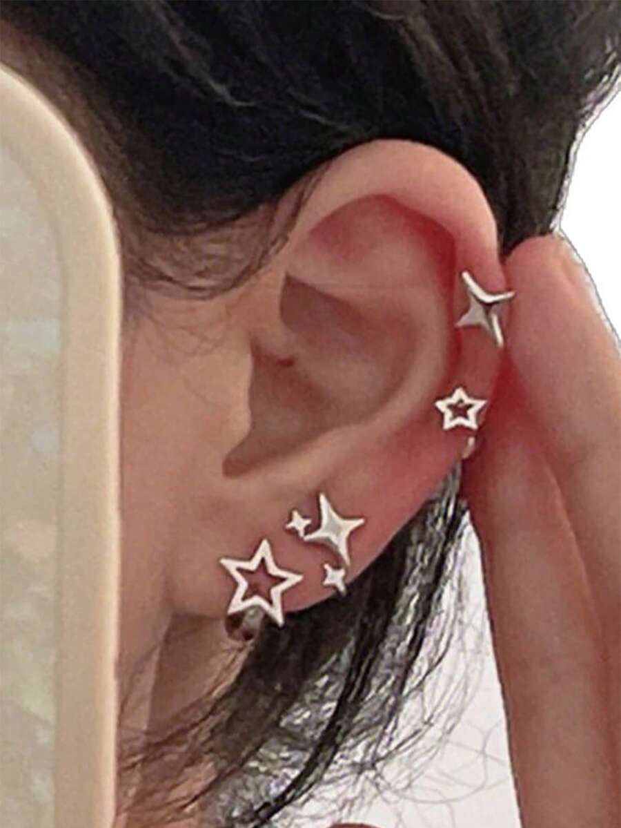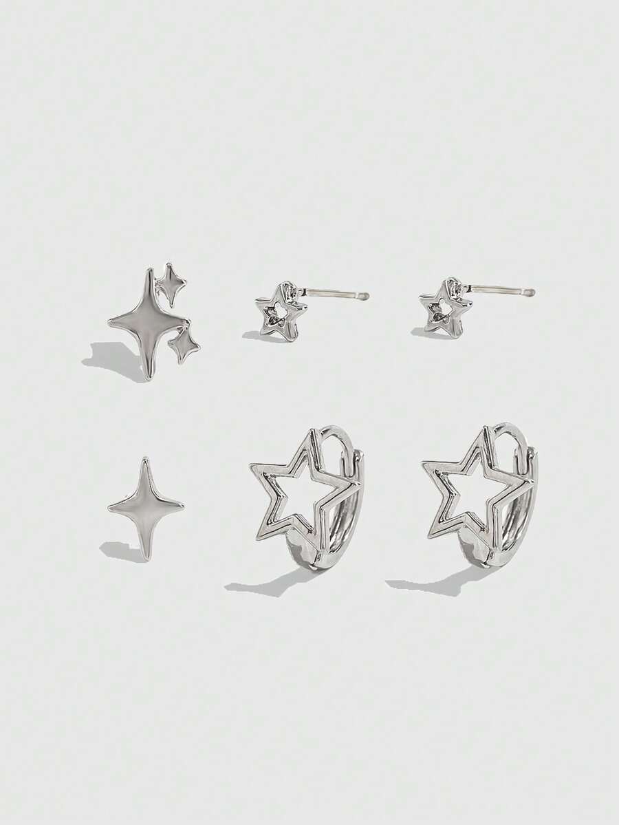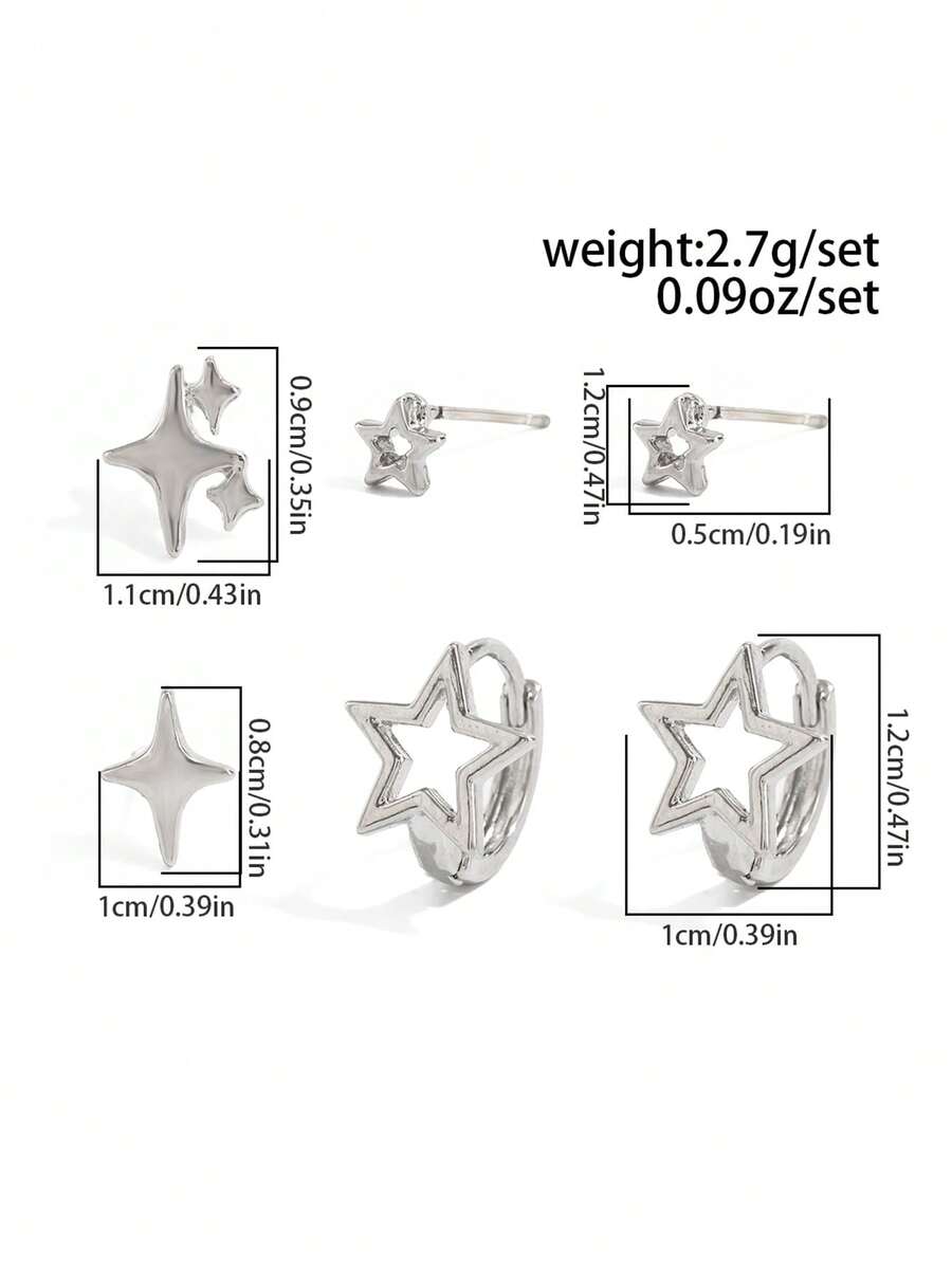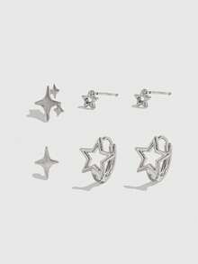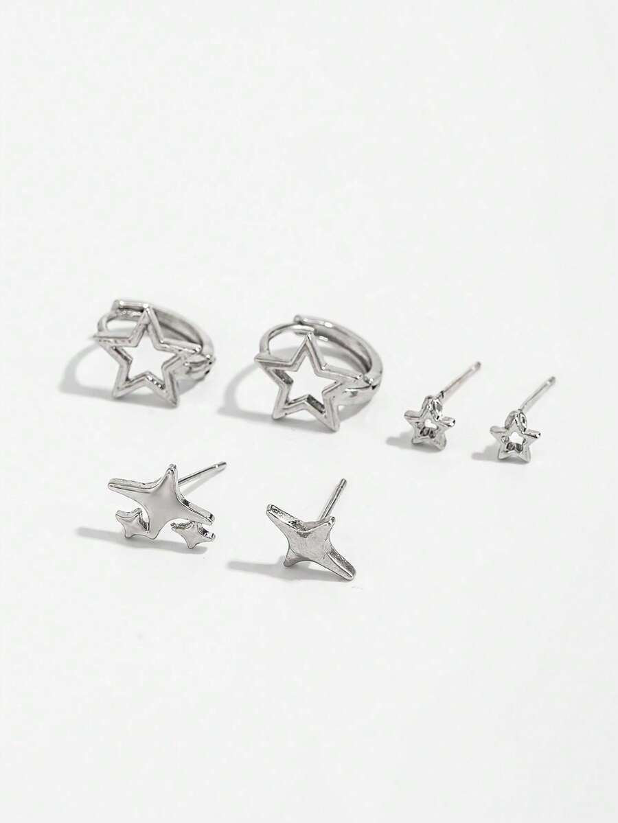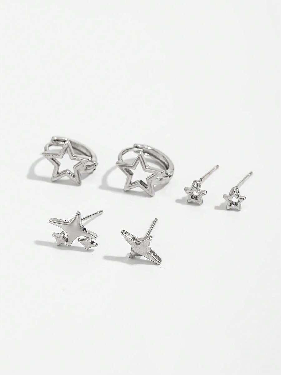 Goth 2pcs Women's Fashion Punk Hollow Star Shaped Hoop Earrings