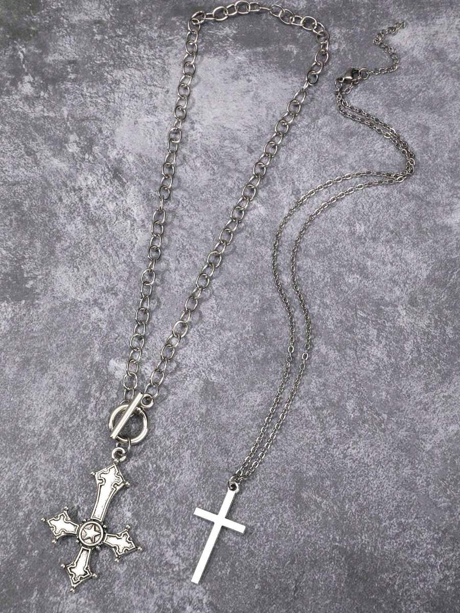 Goth 2pcs/set Cross Pendant Necklace