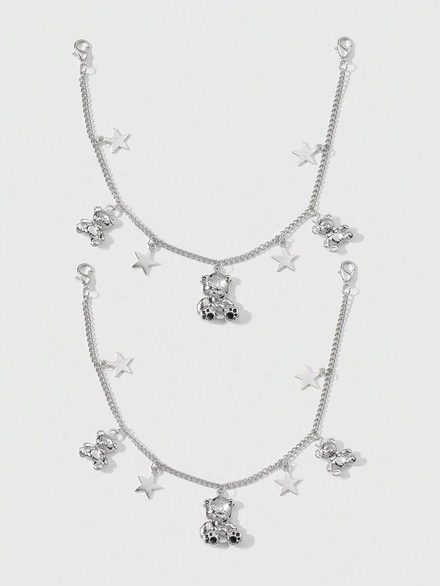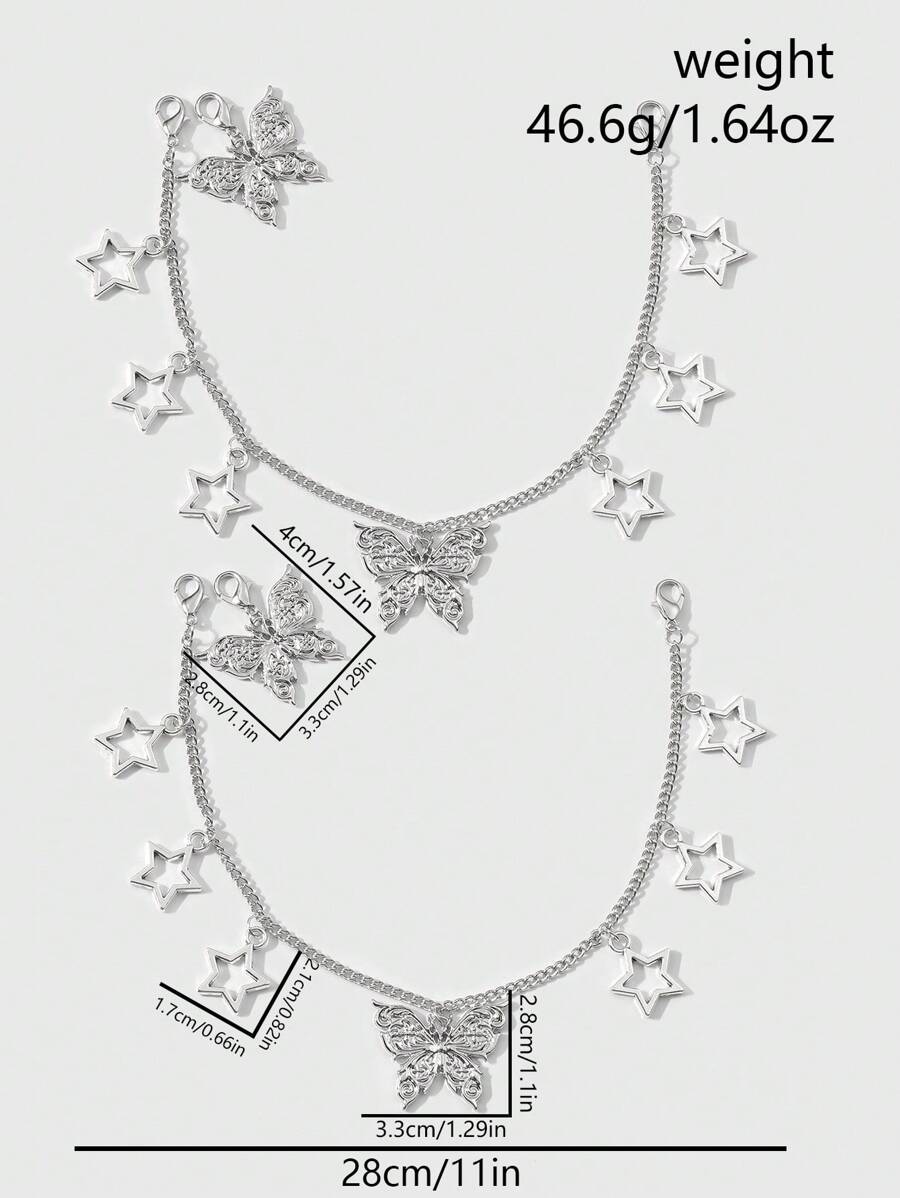4pcs/2pcs Gothic Style Silver Hollow Star, Butterfly, Bear Shaped Pendant Shoe Boot Decorative Combination Set, Suitable For Women/Girls, Daily Wear And Holiday Gifts