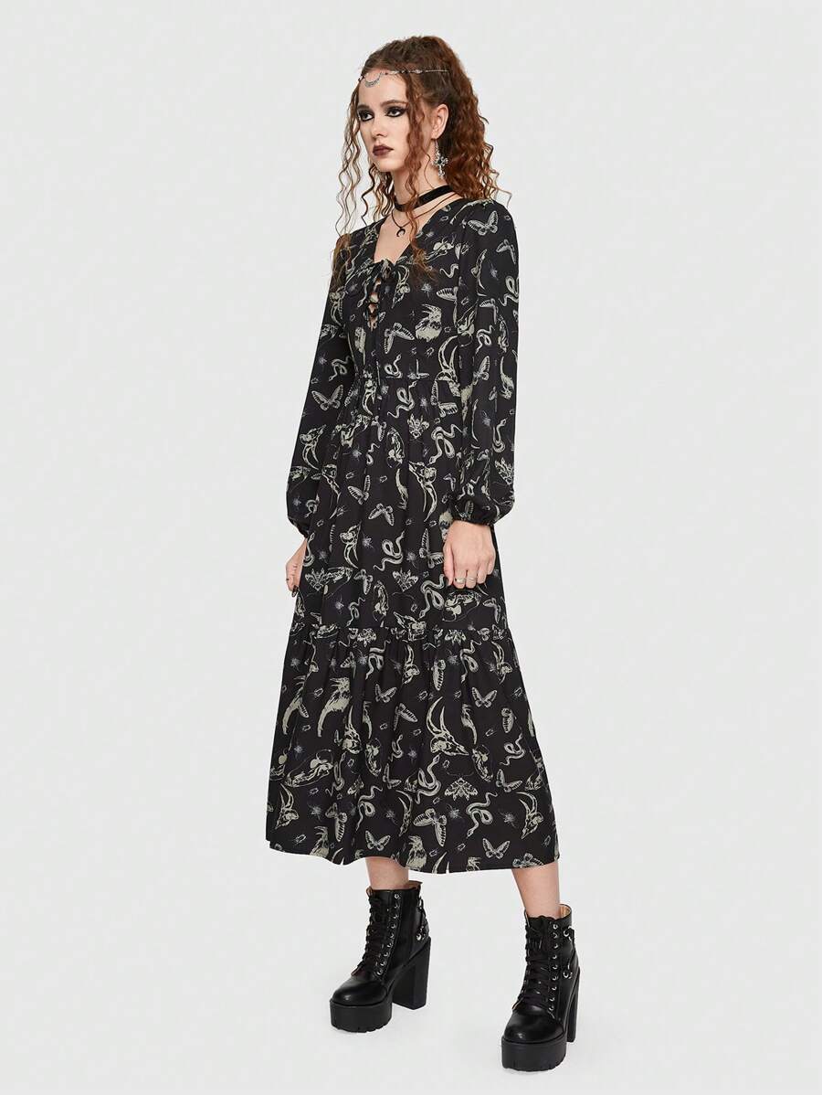 Goth Animal Print Lace Up Front Ruffle Hem Dress Without Corset