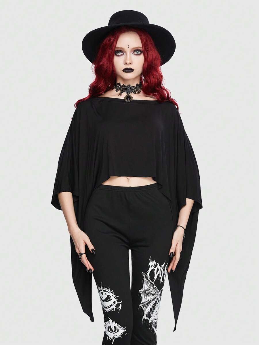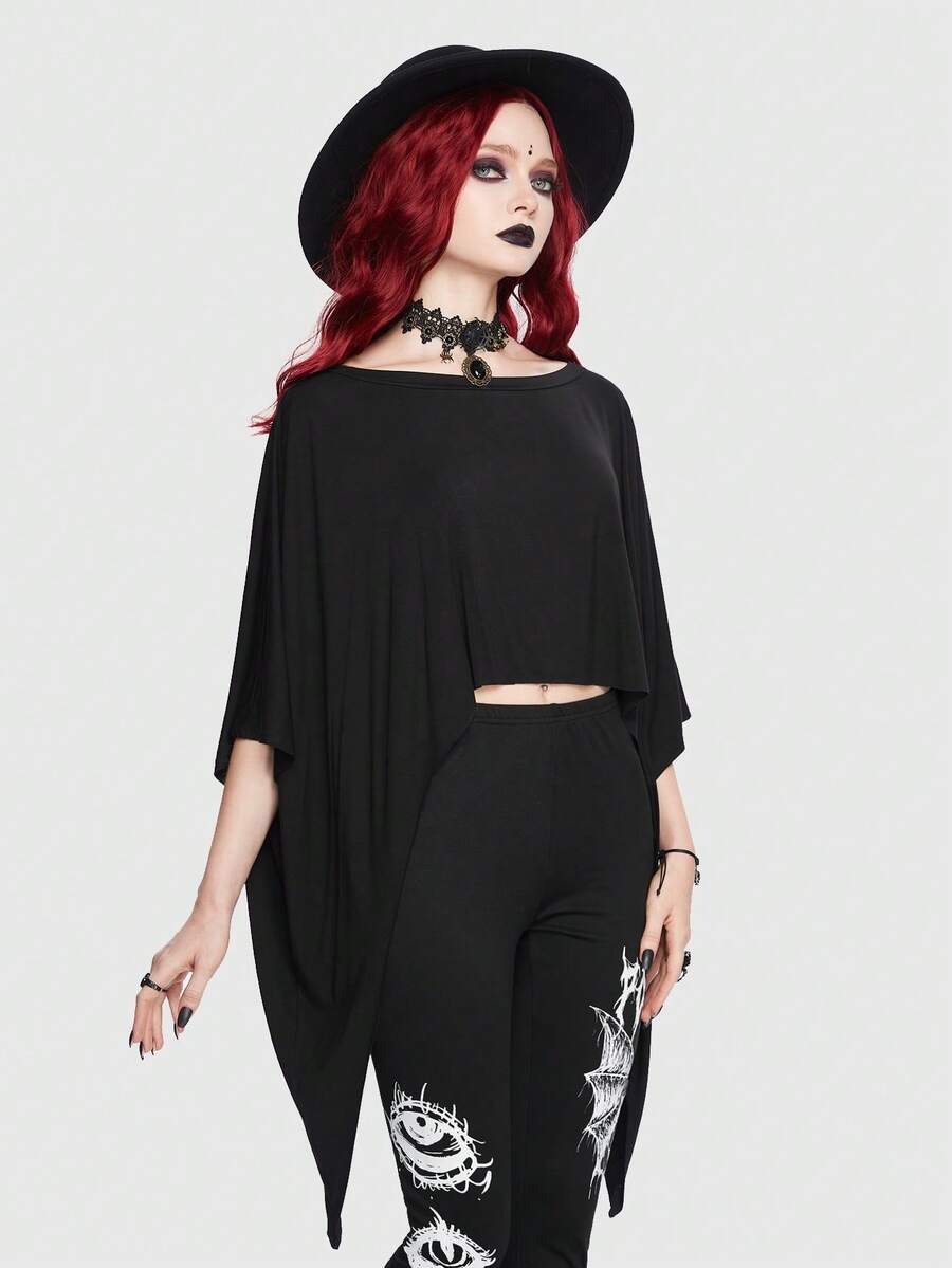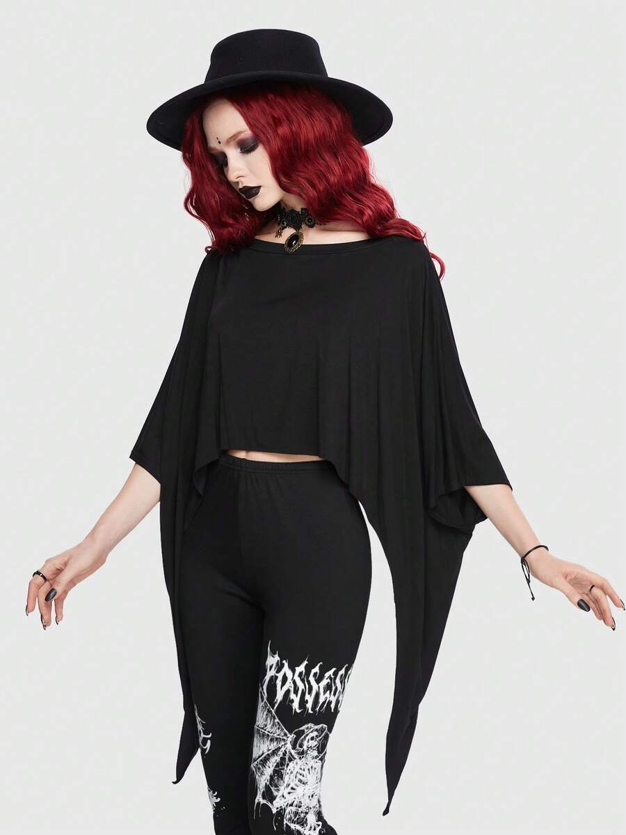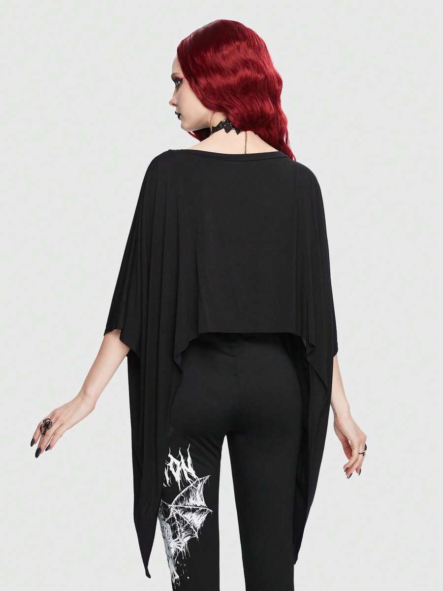 Goth Batwing Sleeve Asymmetrical Hem Tee