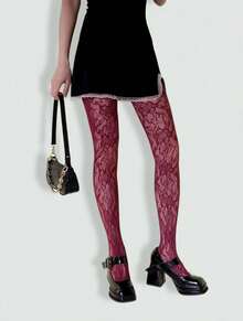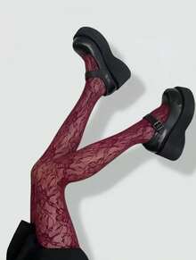 Goth Black Floral High Elasticity Fishnet Pantyhose