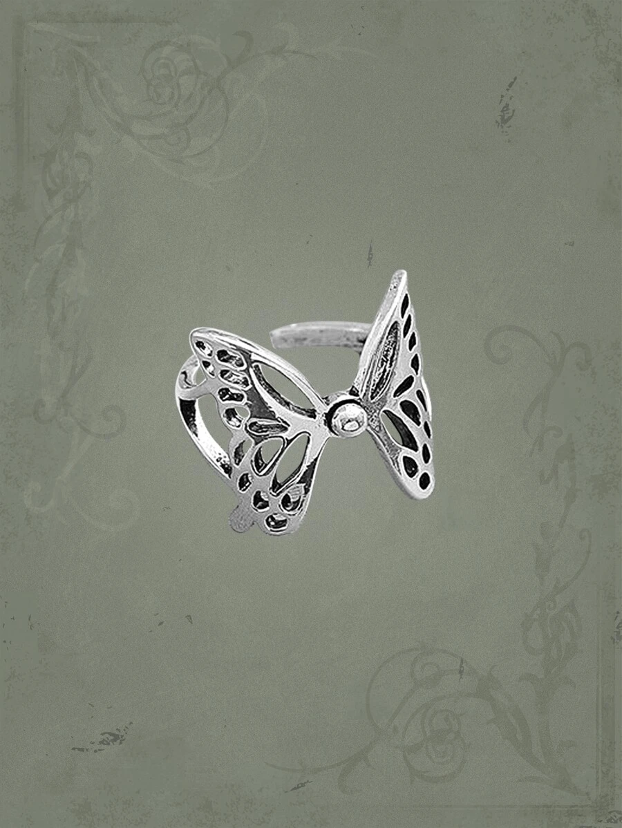Goth Butterfly Decor Cuff Ring