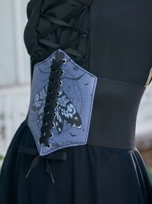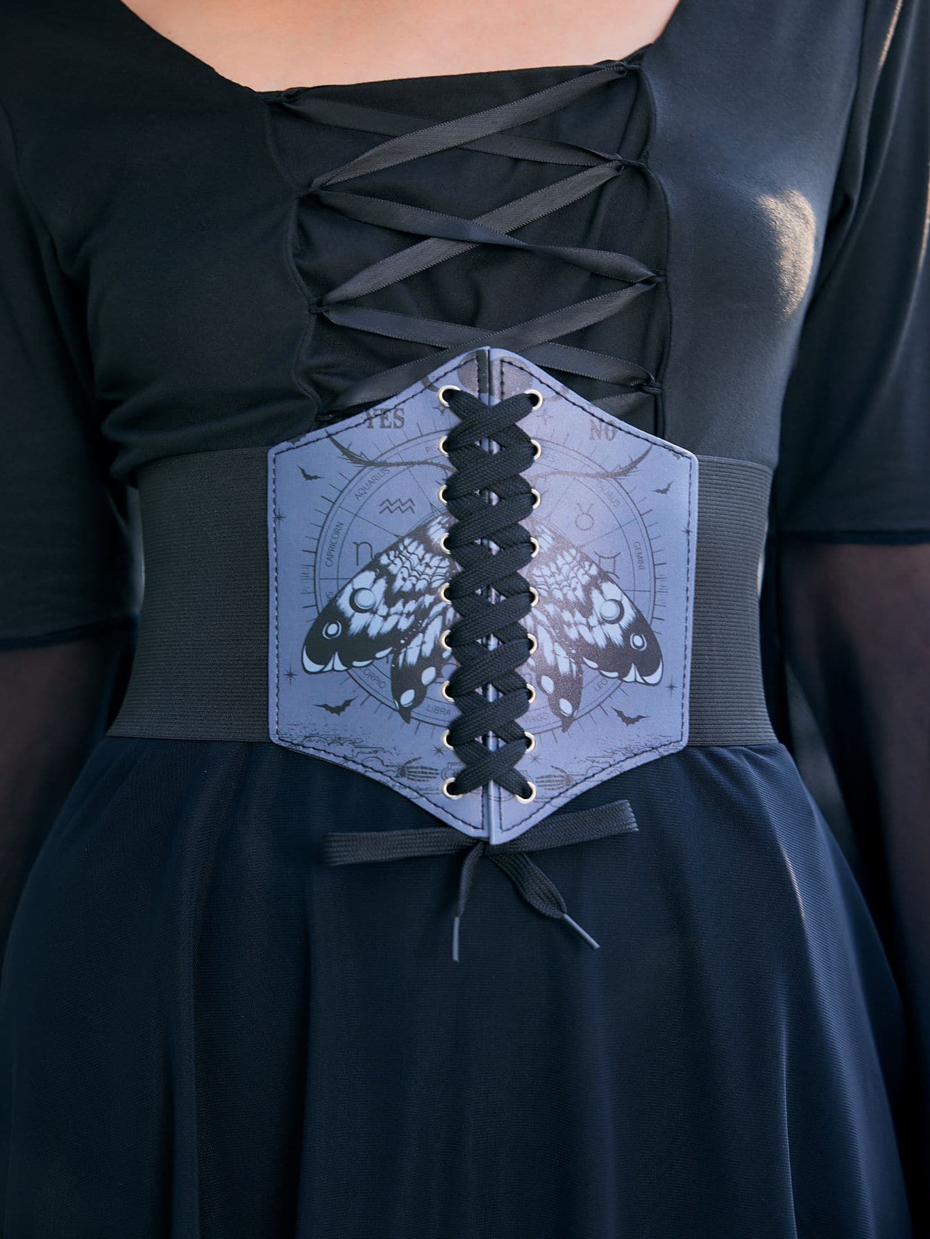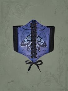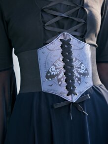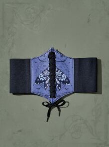 Goth Butterfly Pattern Lace-up Front Corset Belt
