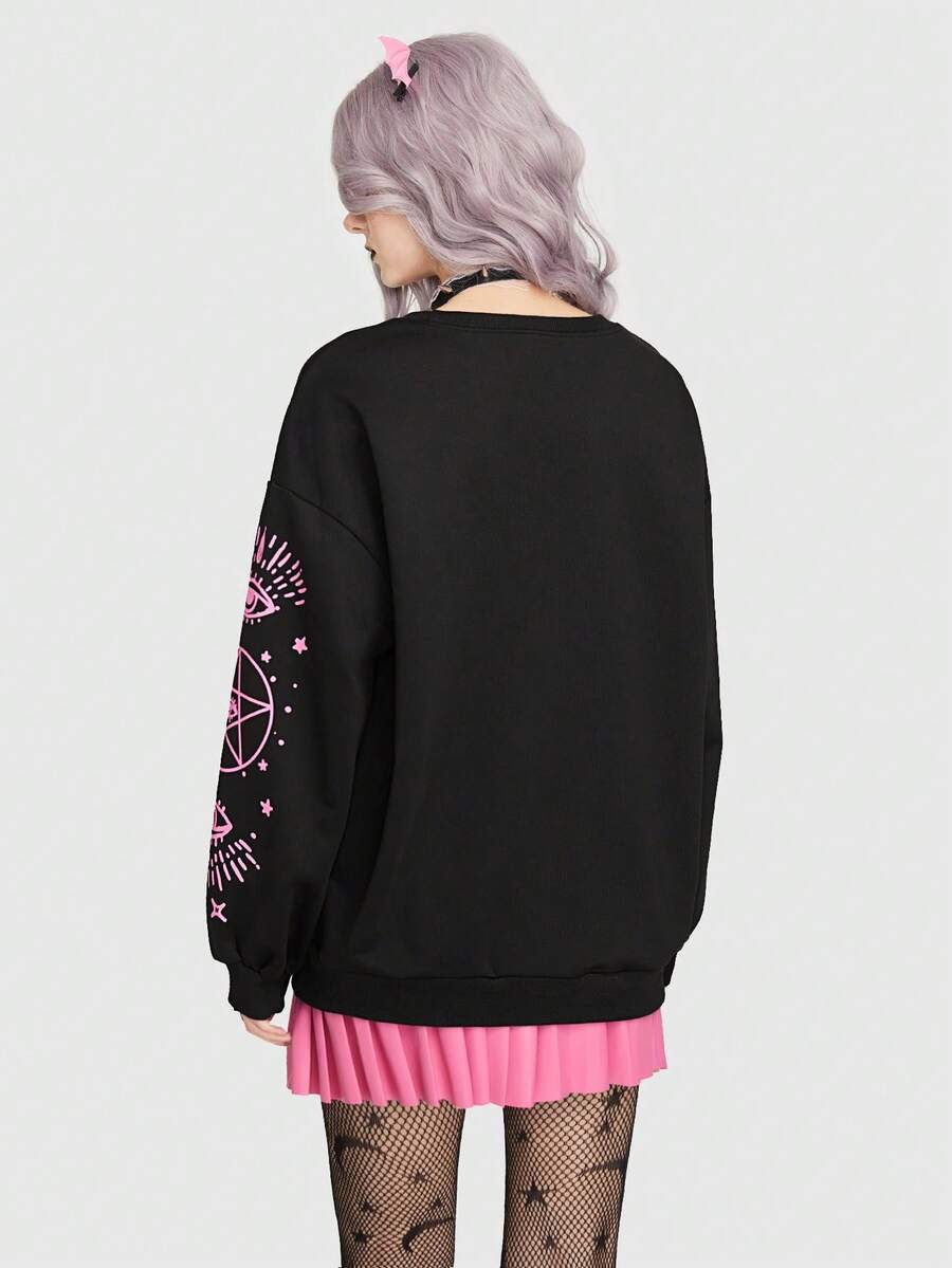 Goth Cat Graphic Drop Shoulder Sweatshirt