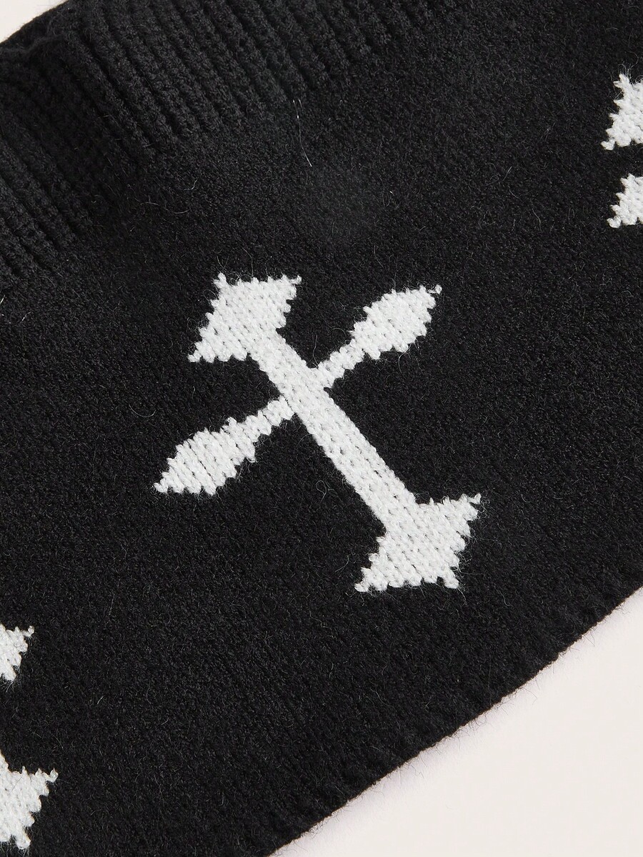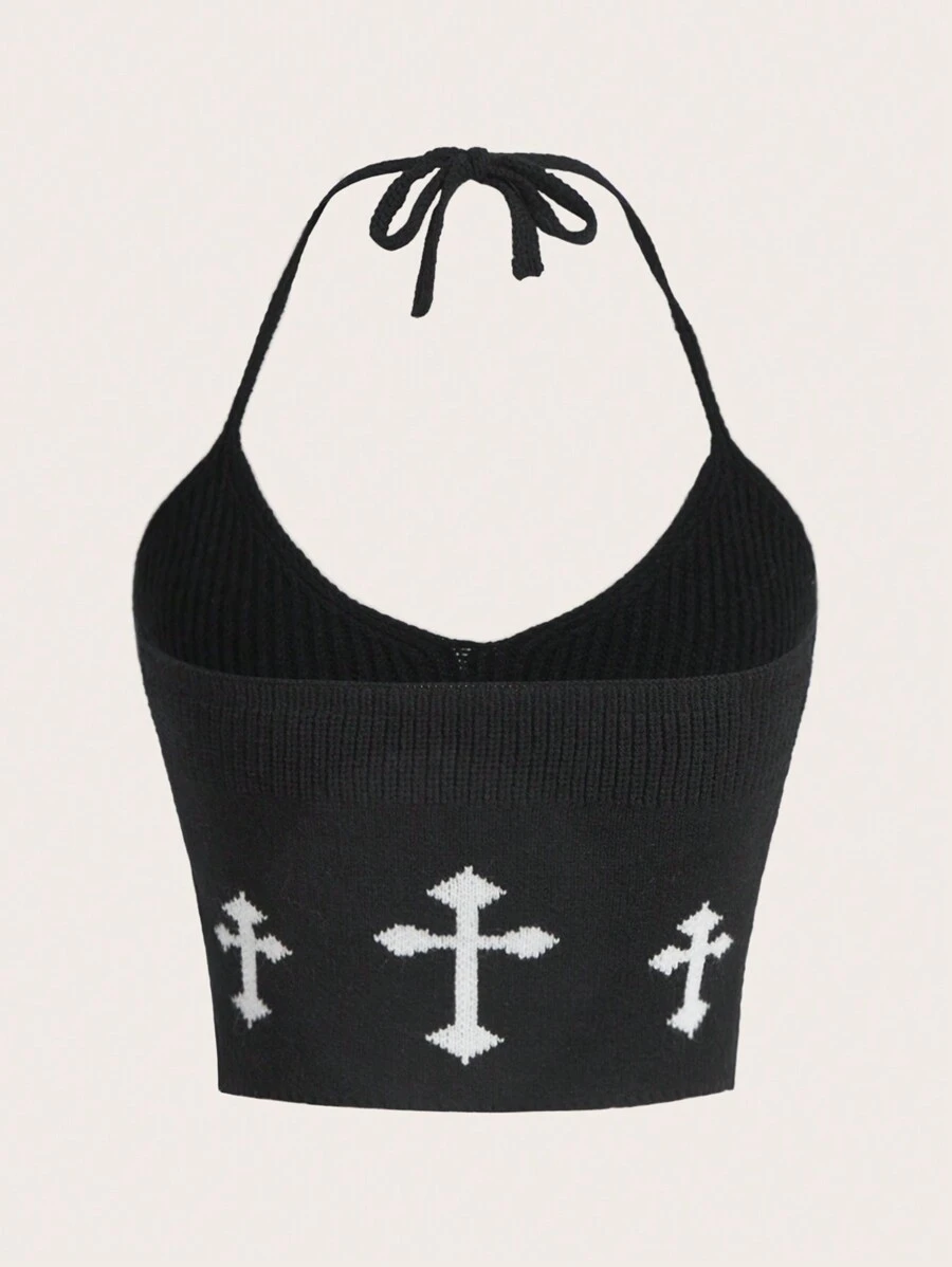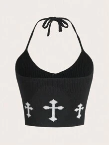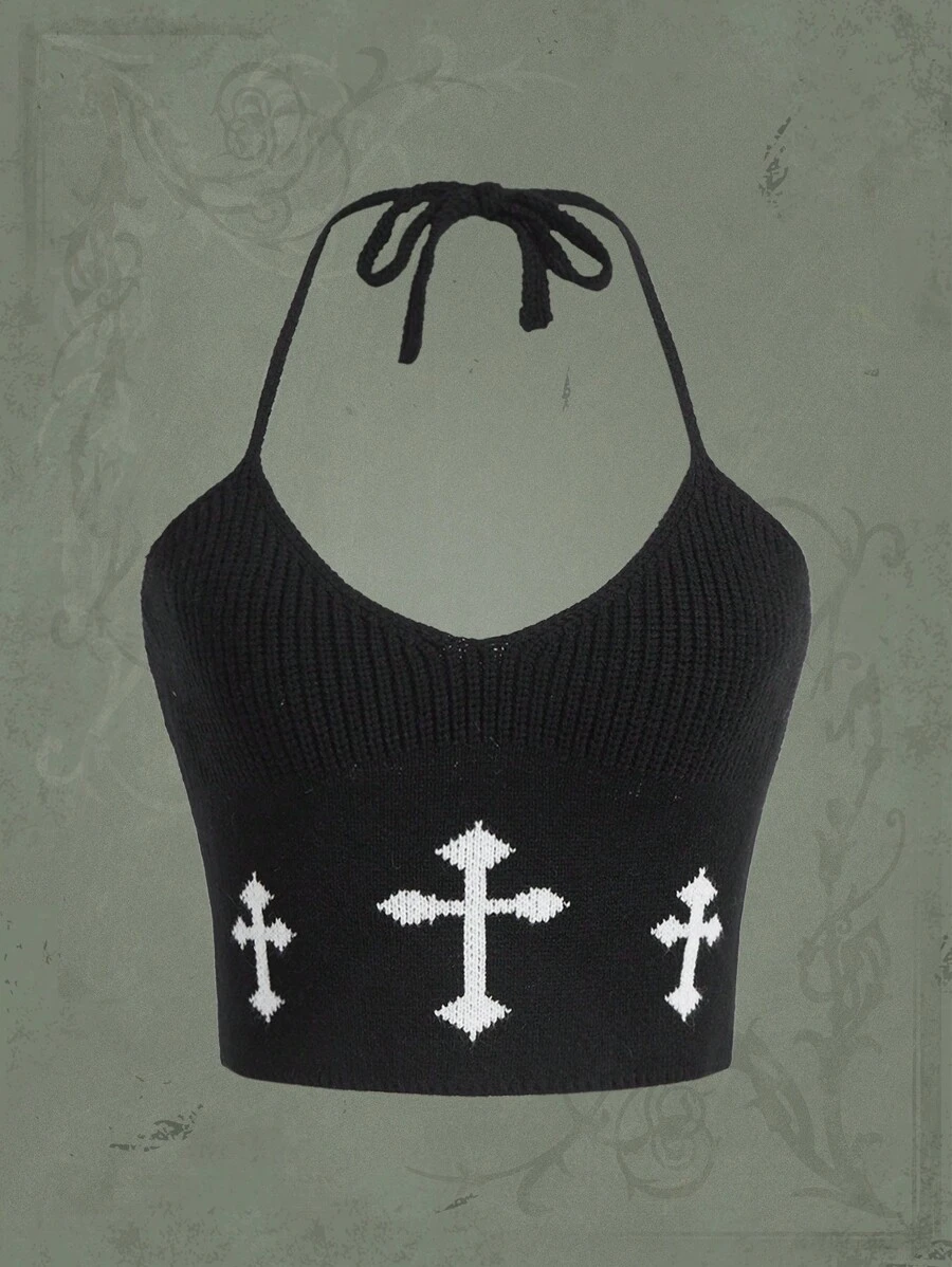 Goth Cross Graphic Crop Knit Top