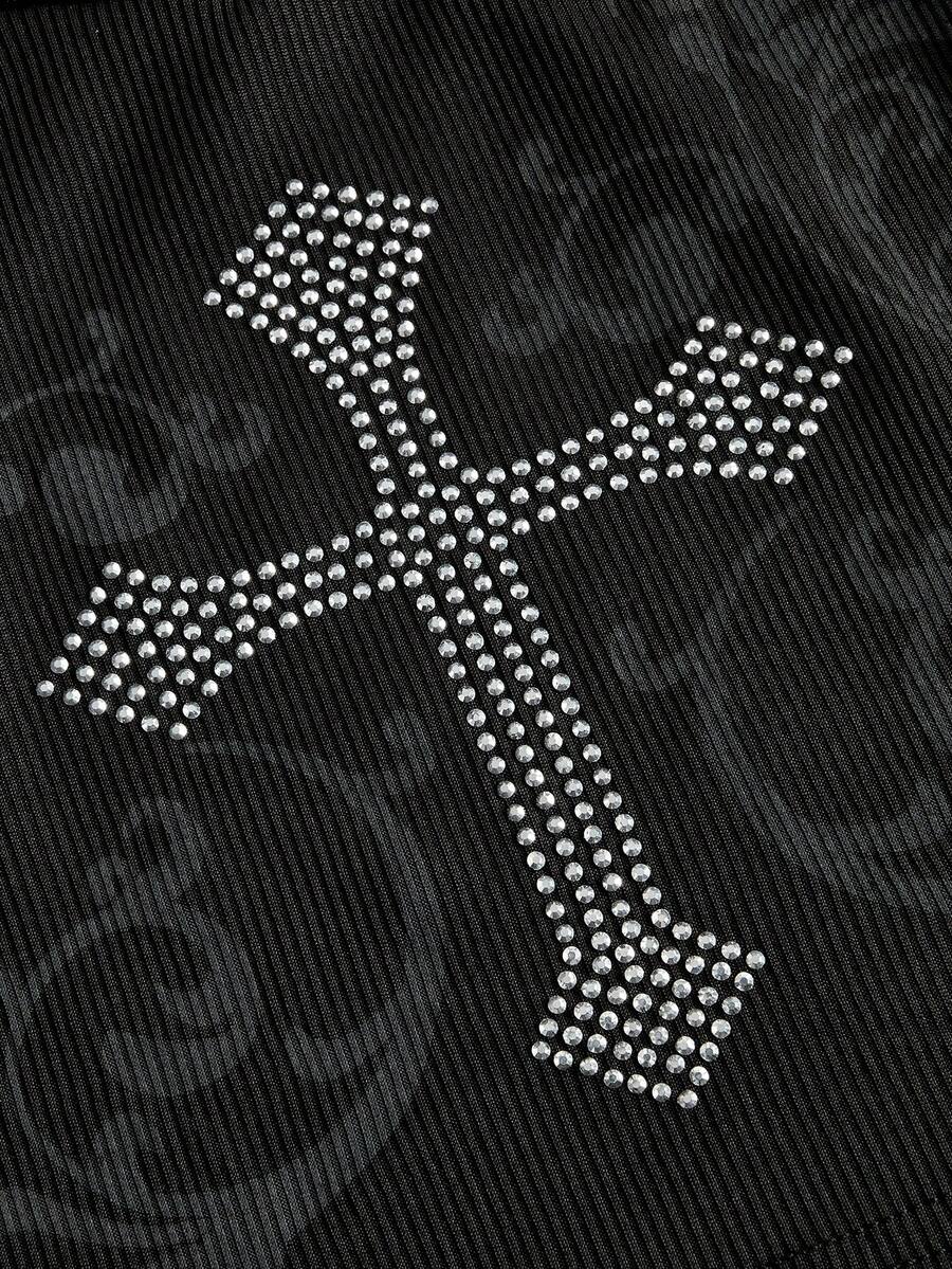 Goth Cross Rhinestone Contrast Lace Cami Top