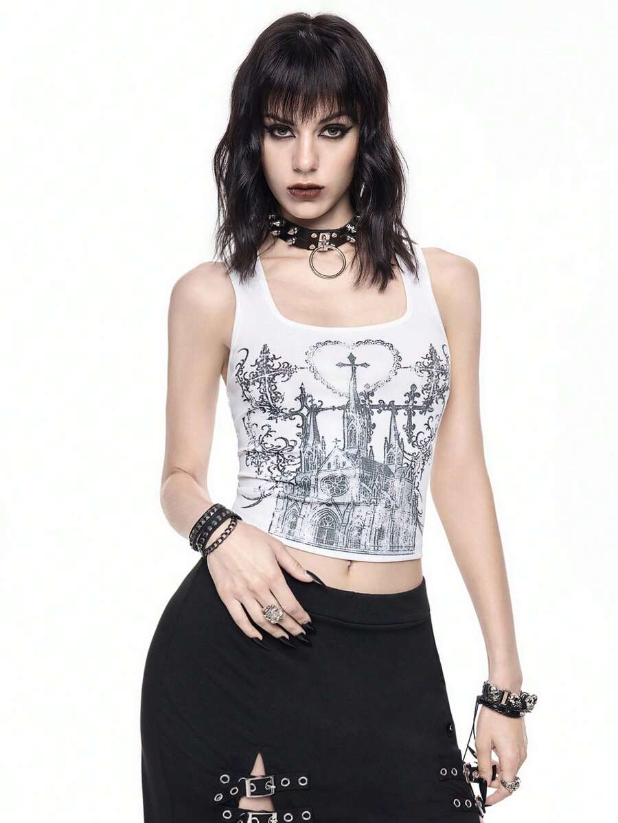 Dark Gothic Castle Cross Vintage Distressed Print Tank Top