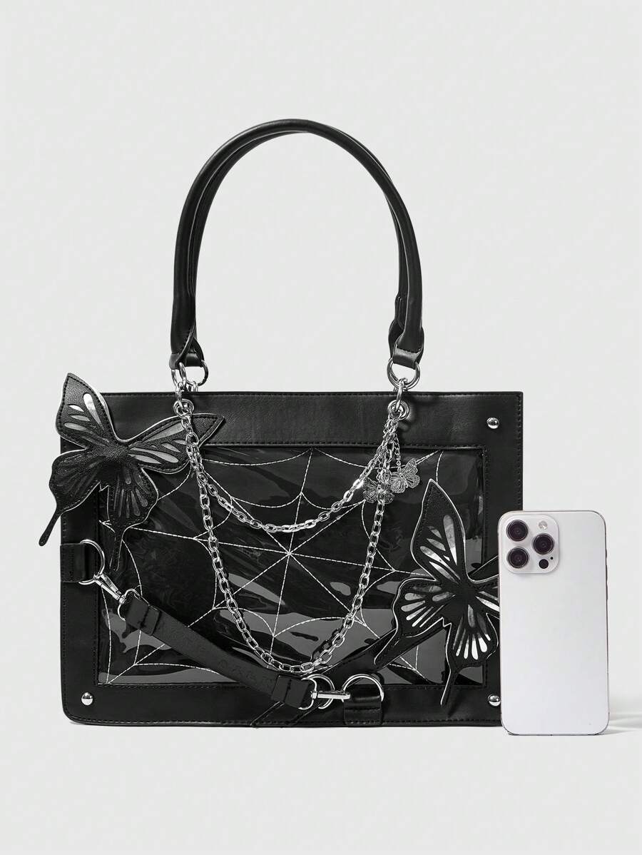 Goth Fashion Butterfly Print Shoulder Bag, Suitable For Daily Commute And Travel