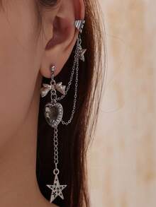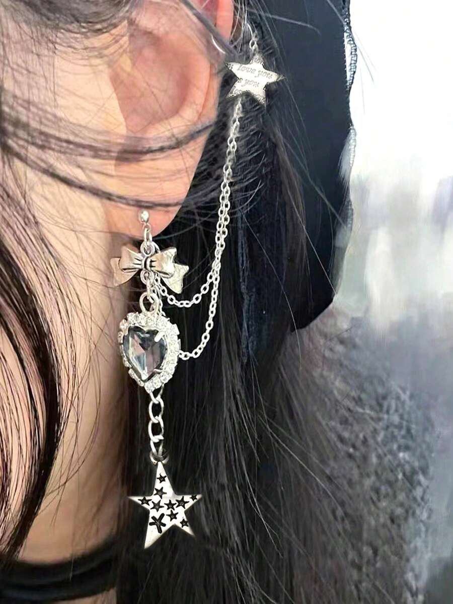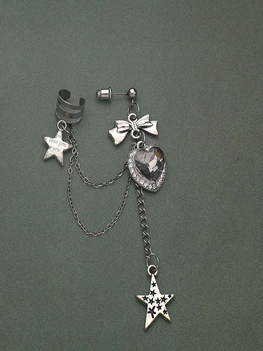 Goth Fashionable Dark Punk Vintage Heart, Bowknot, Star Dangle Earrings