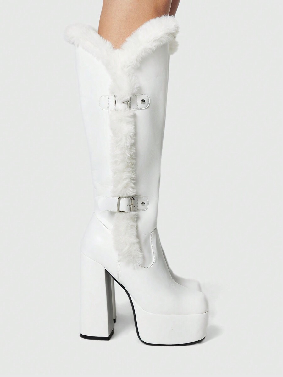 Goth Fashionable Y2K Fluffy Thick Sole Round Toe Lace-Up Punk Snow Boots