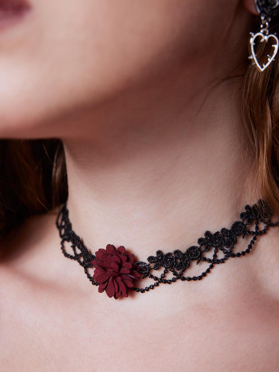 Goth Floral Decor Lace Choker