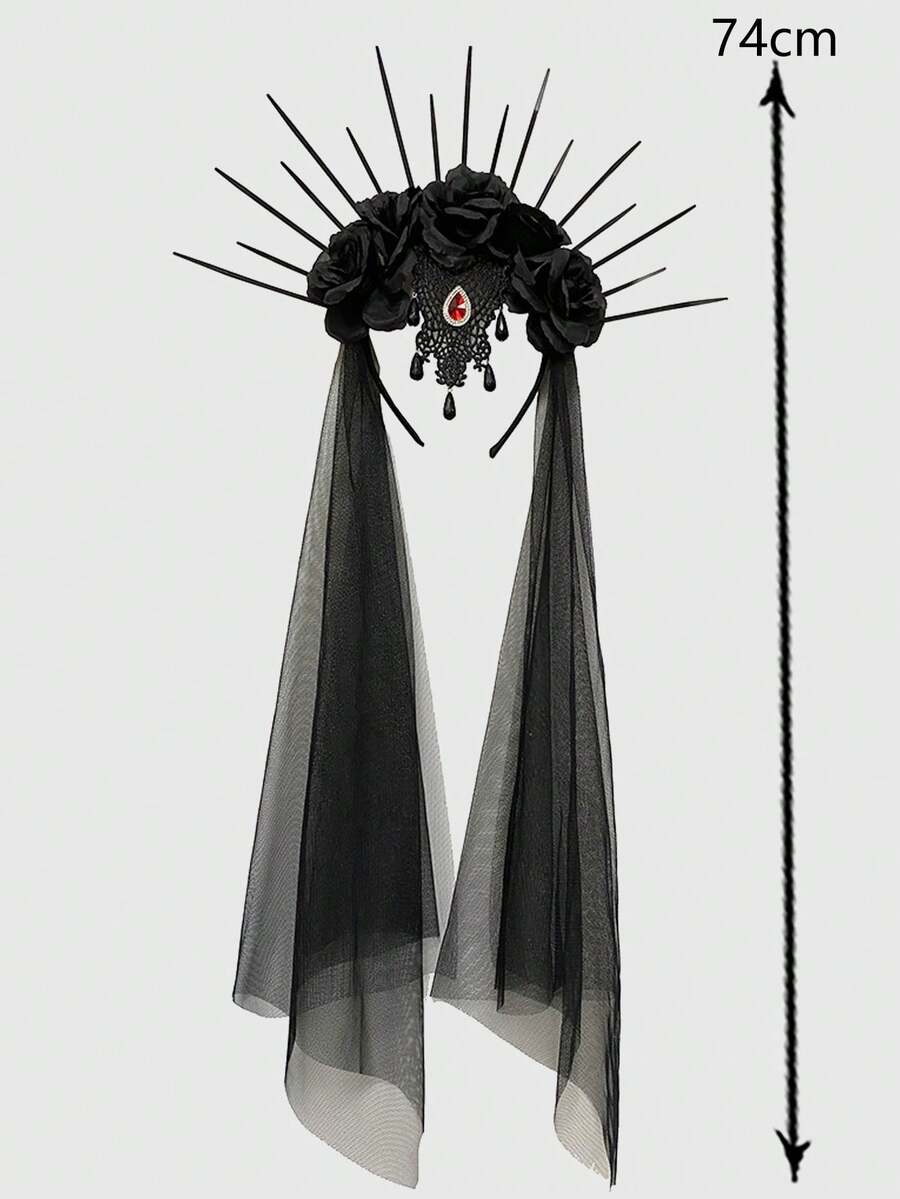 Goth Flower & Rhinestone Decor Headband