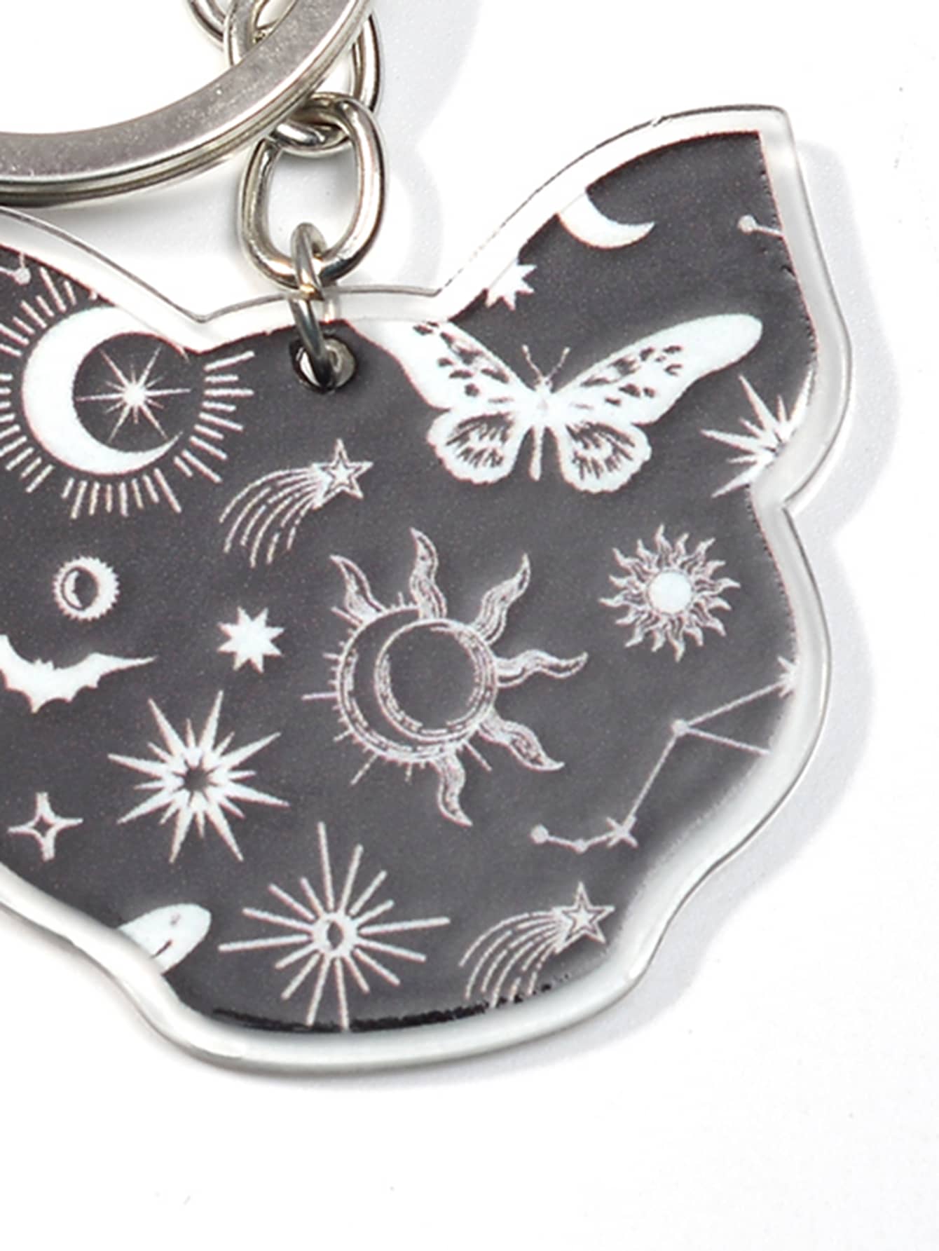 Goth Geometric & Cat Head Charm Keychain