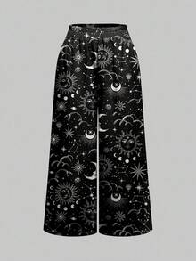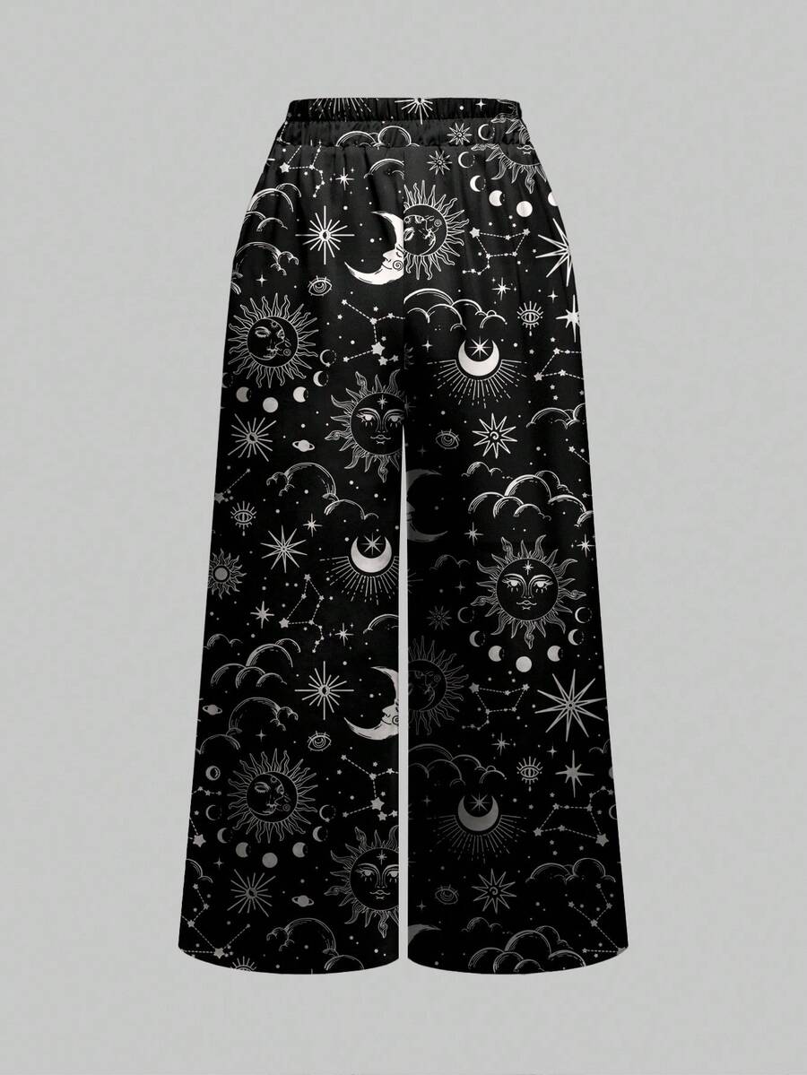 Goth Gothic Dark Hippie Sun Moon Star Constellation Cross All-Over Print Wide Leg Pants For Women