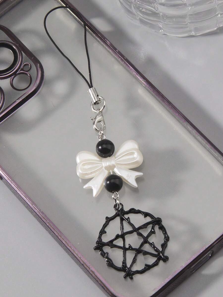 Gothic Dark Style Star & Big Bowknot Design Phone Lanyard, Bag Charm, Diy Summer Accessories Gift, Halloween