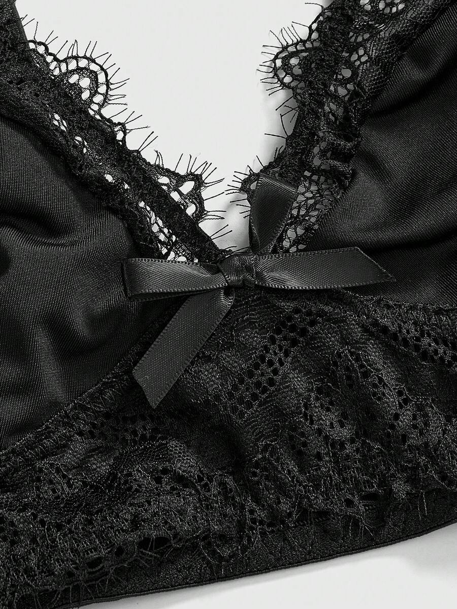 Gothic Lace Triangle Cup Bralette & Panty With Garter Belts, Sexy Lingerie Set
