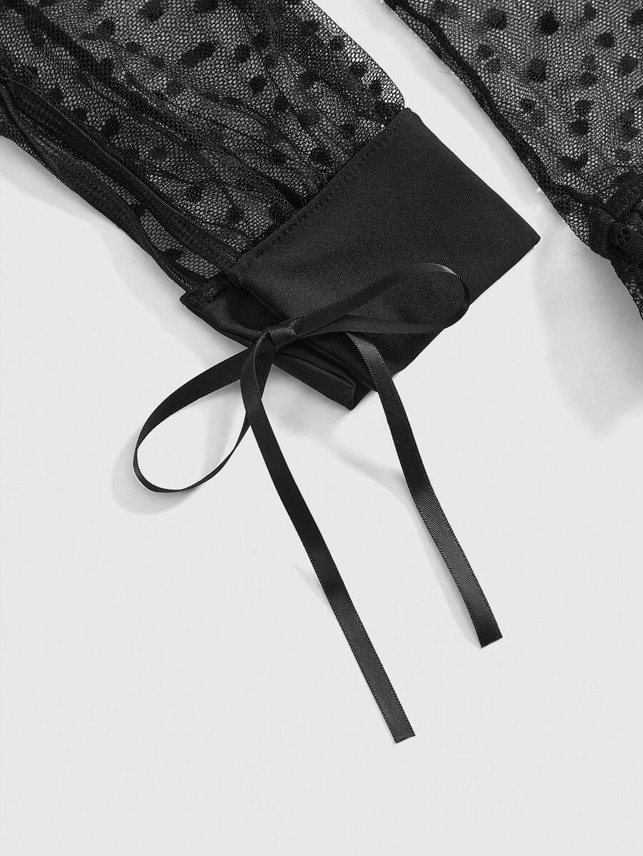 Gothic Rose Bride Seamless Long Sleeve Polka Dot Lace Sexy Jumpsuit, Wireless