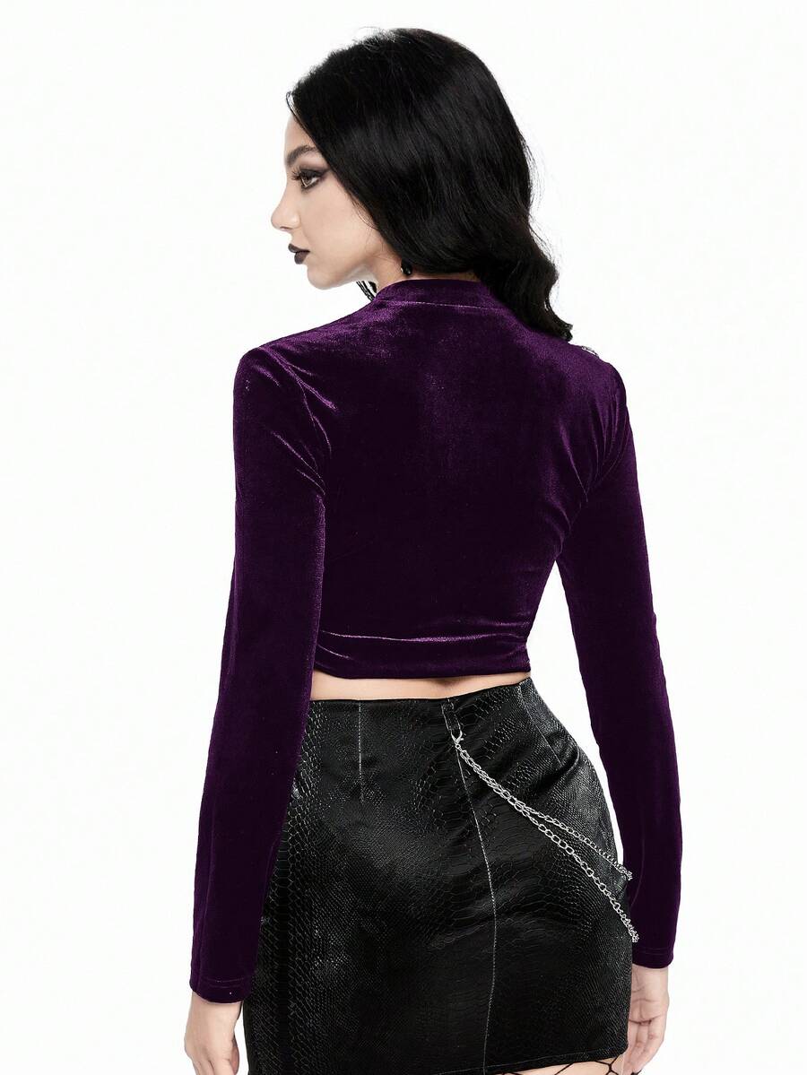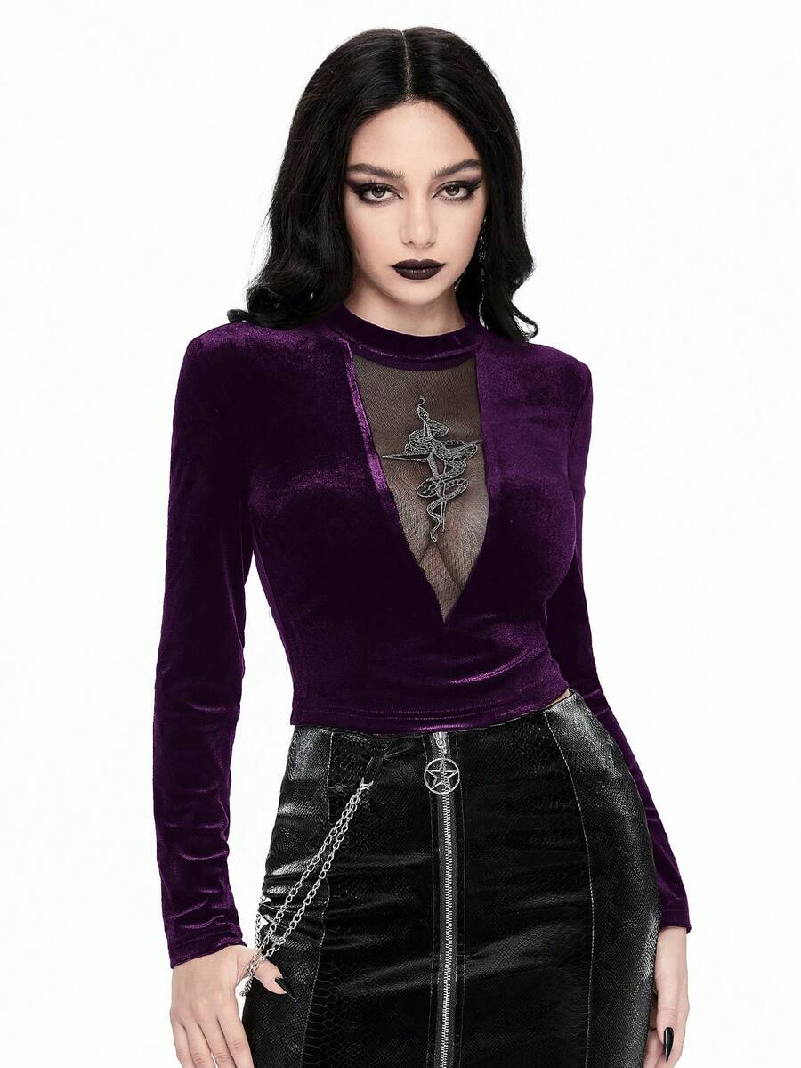 Gothic Sexy Snake Embroidered Hollow Out Front Women T-Shirt