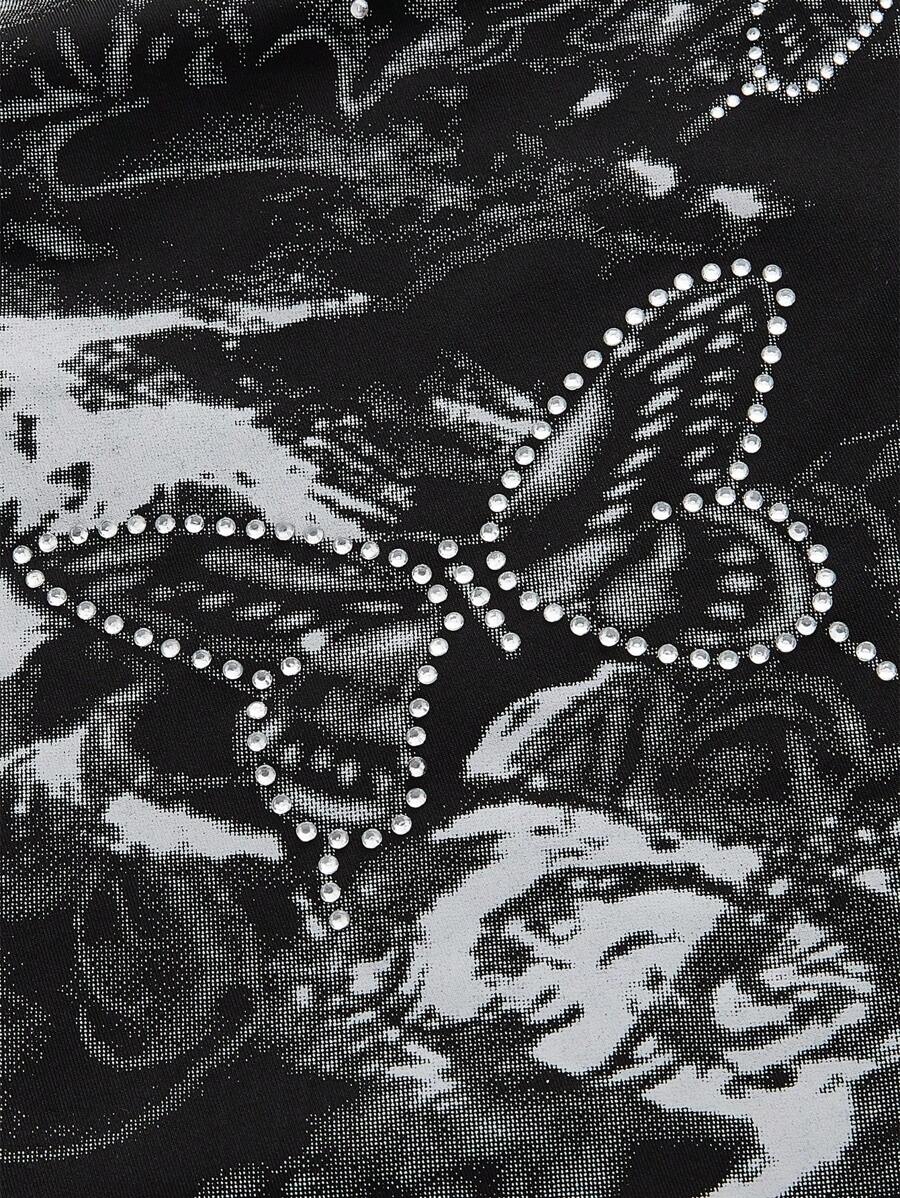 Gothic Style Butterfly & Rhinestone Decoration Wrinkle Oblique Shoulder Skinny Women's T-Shirt