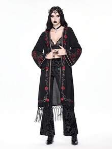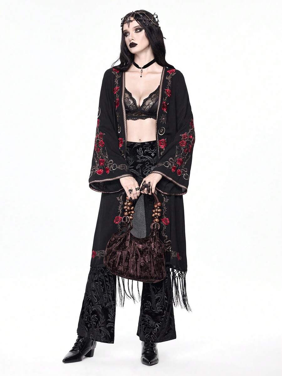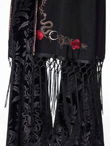 Gothic Vintage Floral, Snake Skin, Plant Embroidery Fringe Patchwork Women Long Cardigan