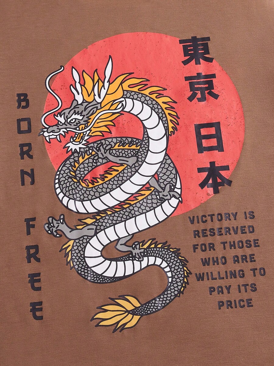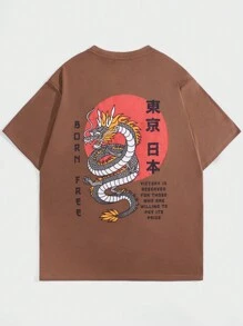 Goth Guys Japanese Letter & Dragon Graphic Tee