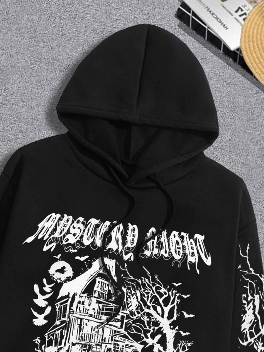 Goth Guys Letter House Graphic Drawstring Hoodie