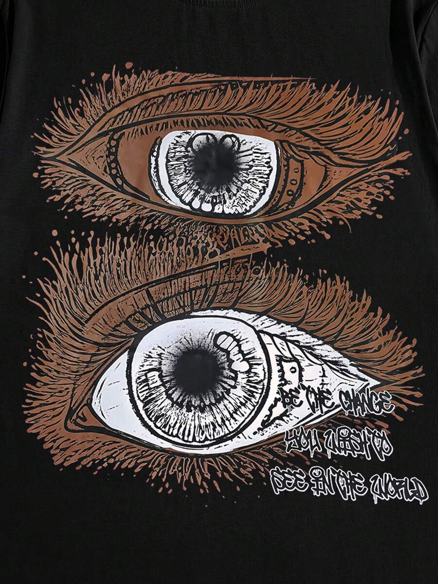 Goth Guys Slogan & Eye Print Tee