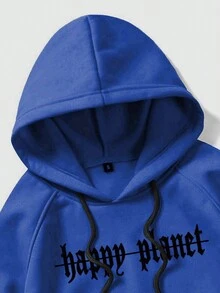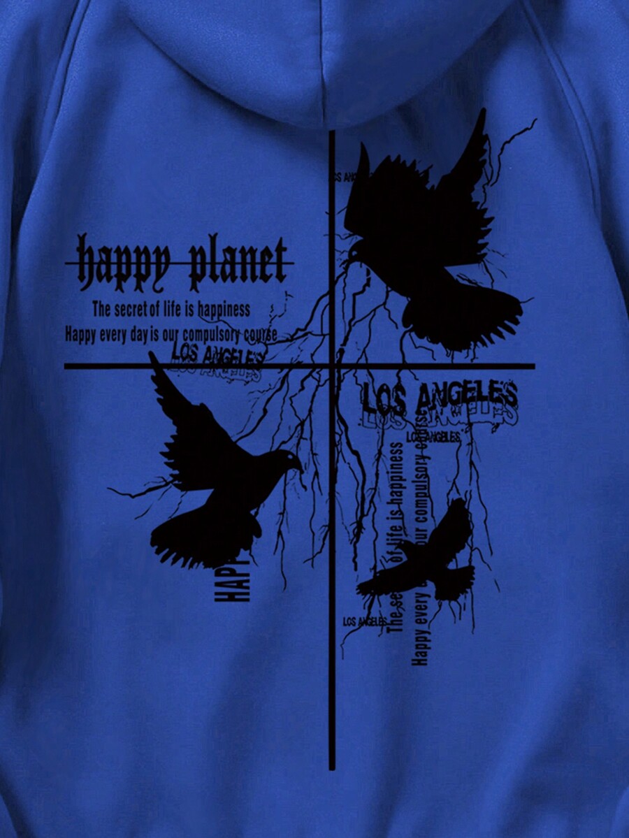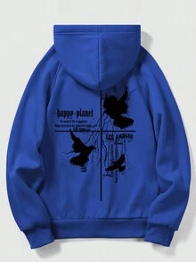 Goth Men Slogan & Pigeon Print Kangaroo Pocket Drawstring Thermal Lined Hoodie