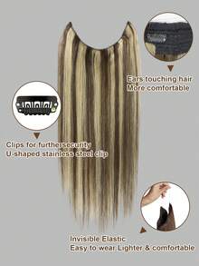 Goth Halo Hair Extensions Straight, 100% Real Human Hair, Invisible Wire Extensions For Women,14-20 Inch,#P427 Medium Brown Mixed Dark Blonde
