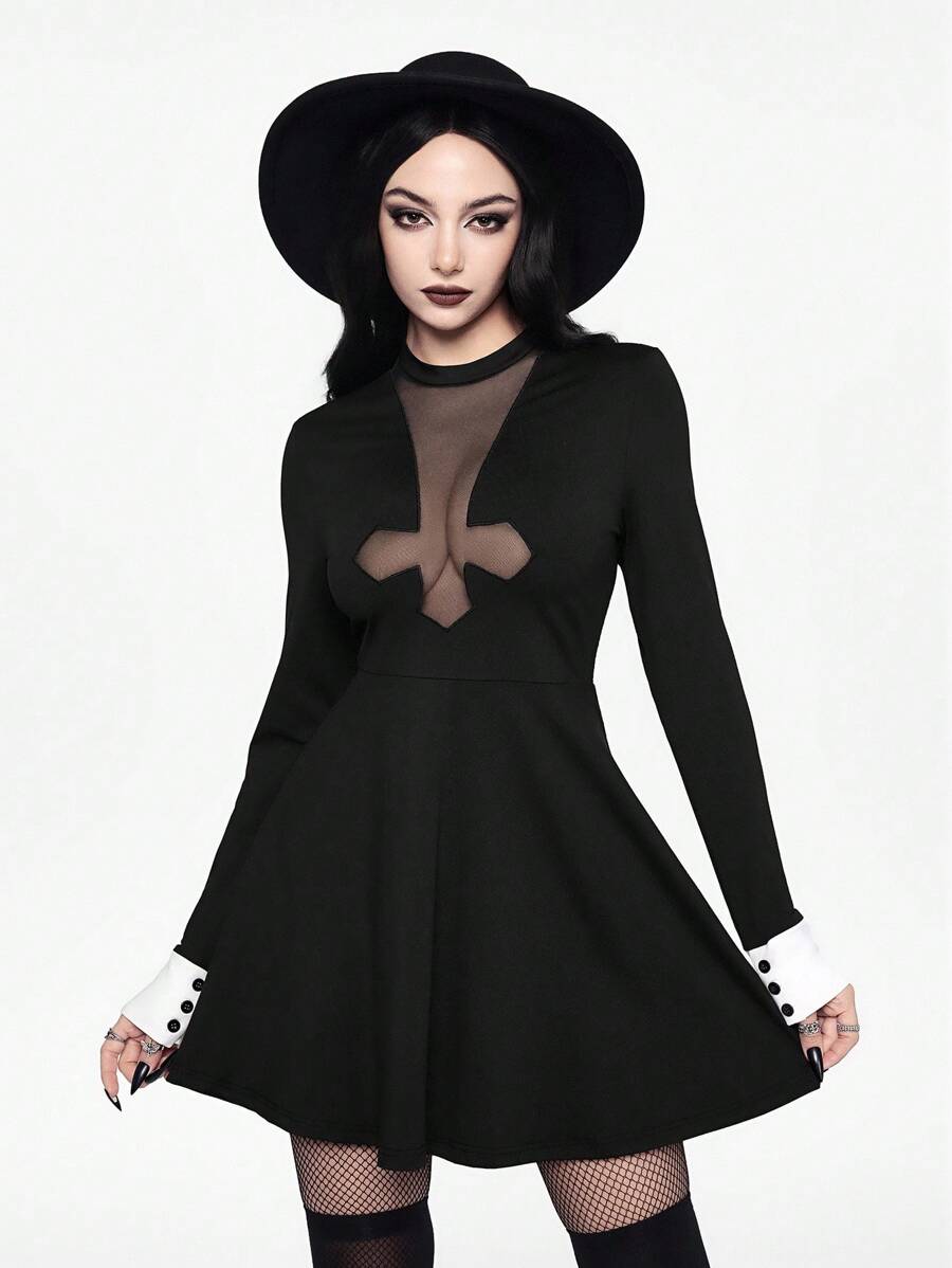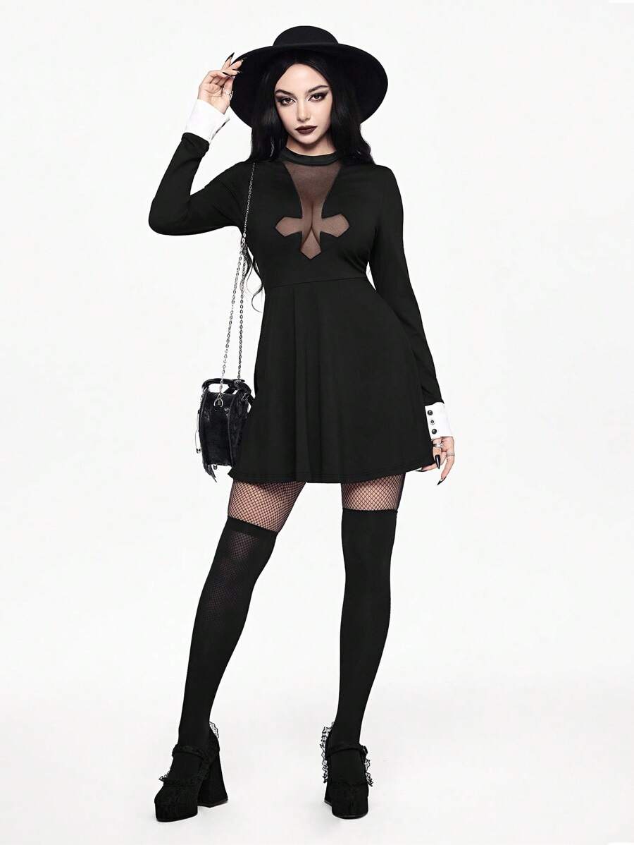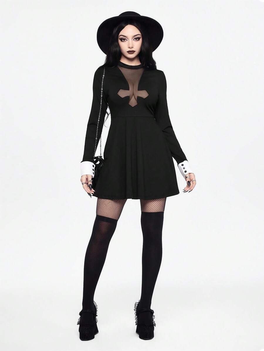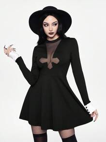 Goth Hollow Cross Collar Women's Dress, Halloween
