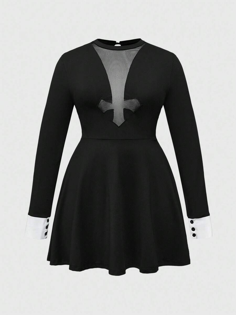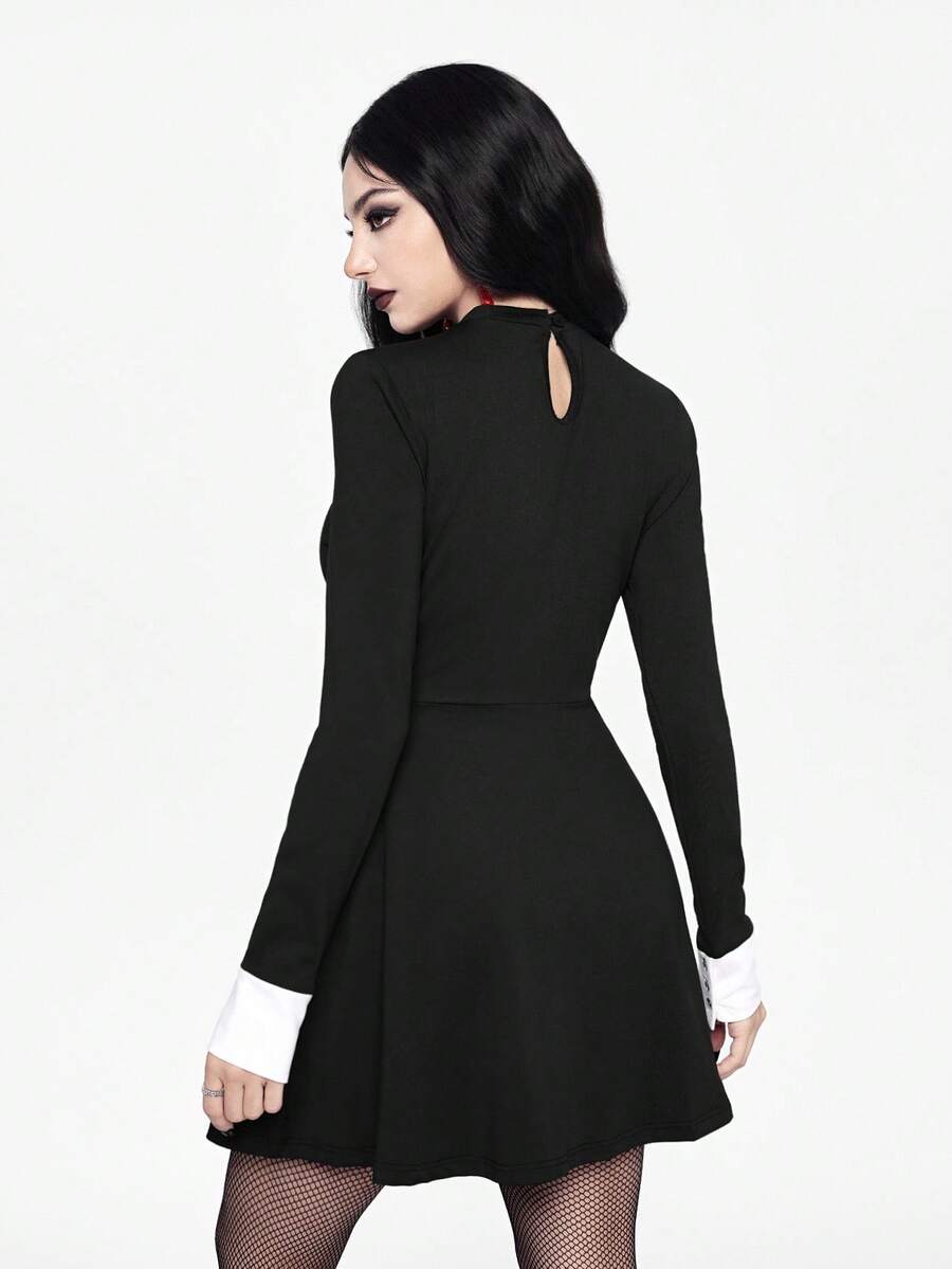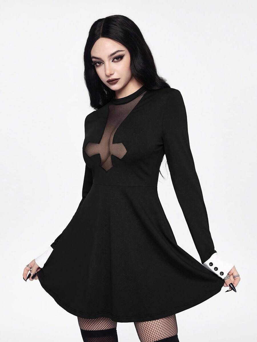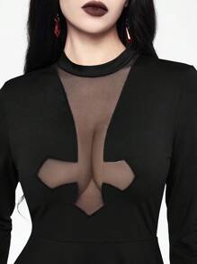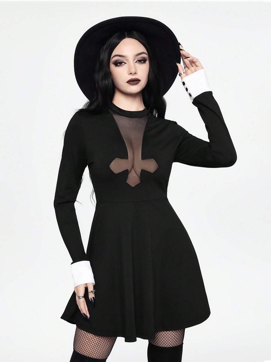 Goth Hollow Cross Collar Women's Dress, Halloween