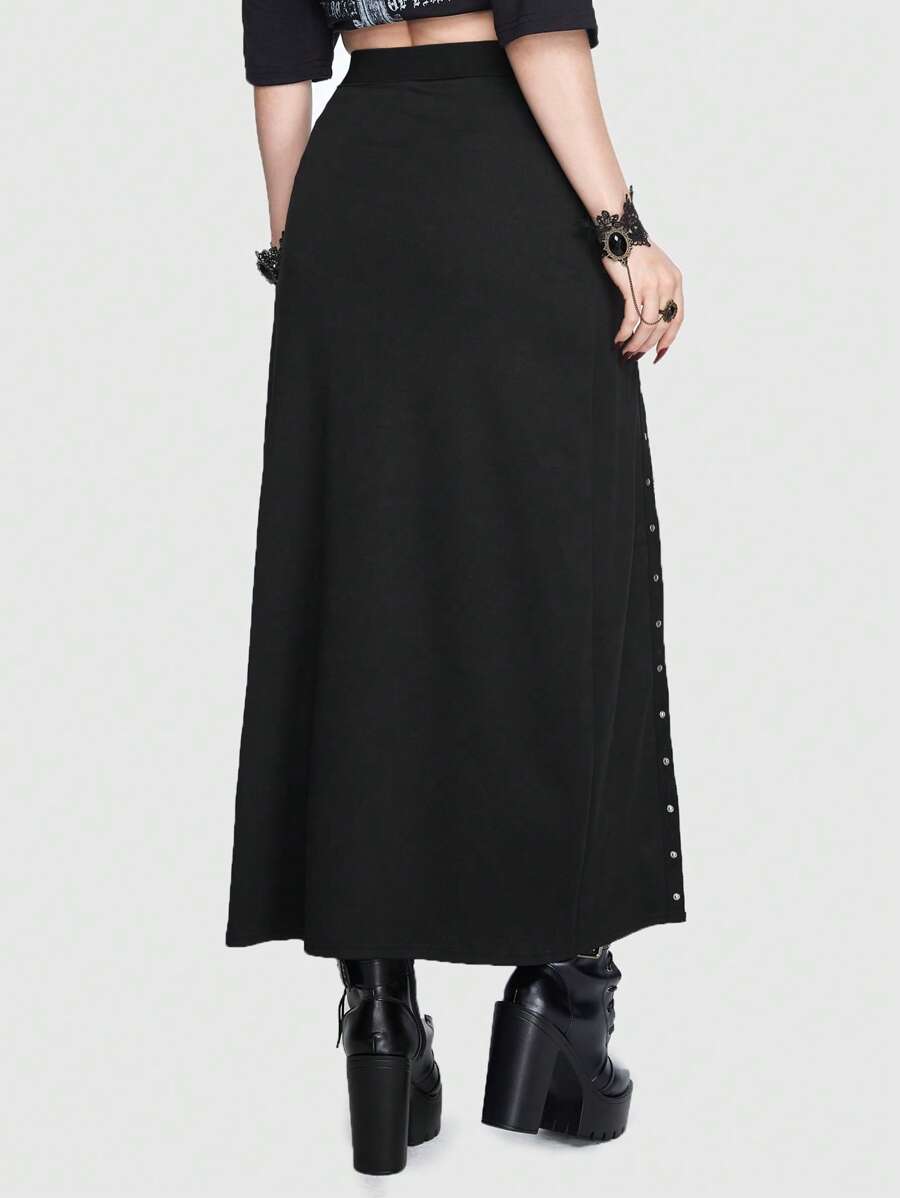 Goth Hook And Eye Split Thigh Skirt