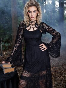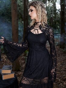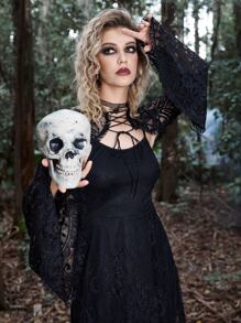 Goth Lace Up Bell Sleeve Super Crop Top