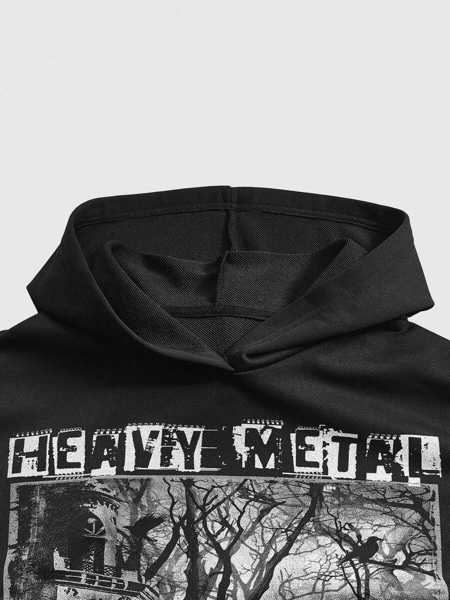 Goth Ladies' Tree And Letter Printed Hoodie Sweatshirt With Kangaroo Pocket