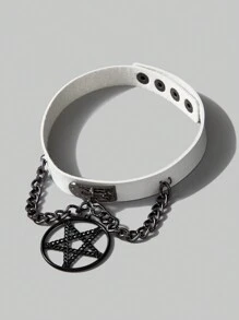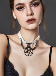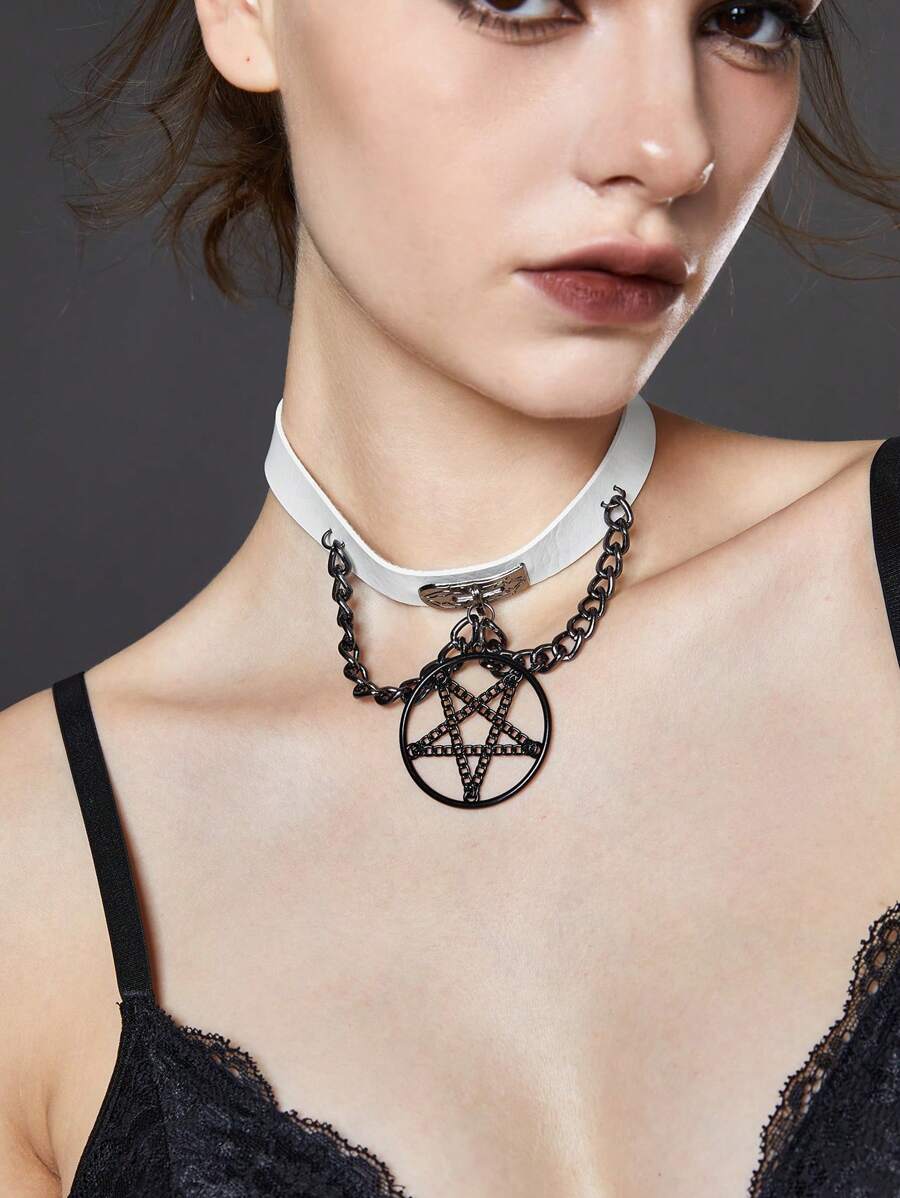 Goth Large Star & Circle Linked Chain Collar Necklace