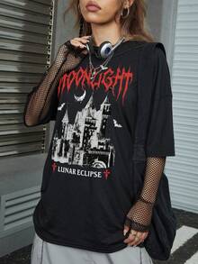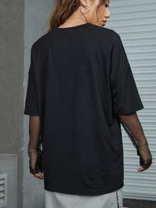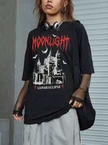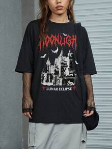 Goth Letter Graphic Drop Shoulder Tee