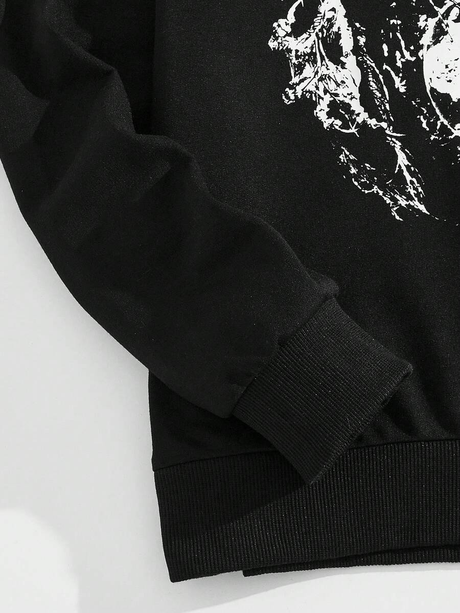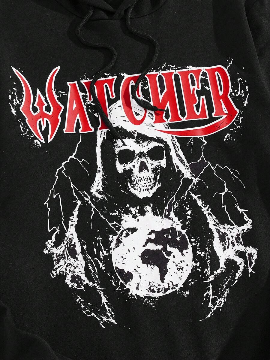 Goth Men Letter & Skull Graphic Drawstring Hoodie