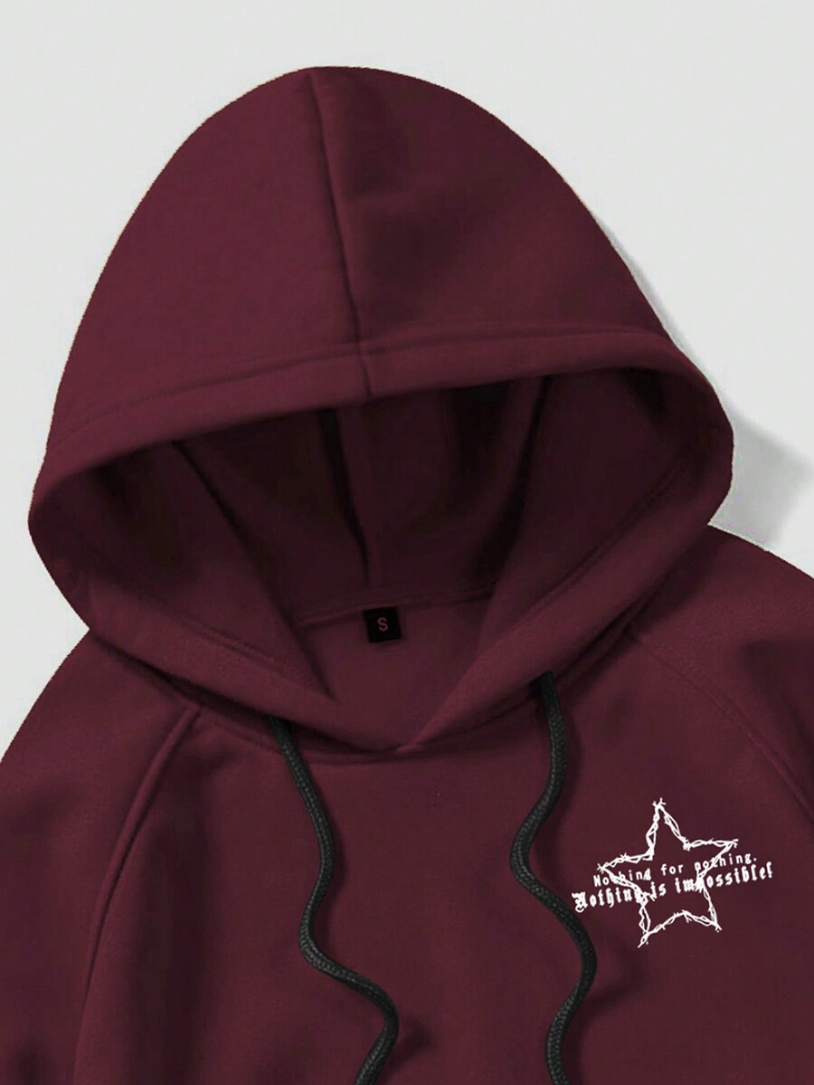 Goth Men Star & Slogan Graphic Raglan Sleeve Drawstring Thermal Lined Hoodie
