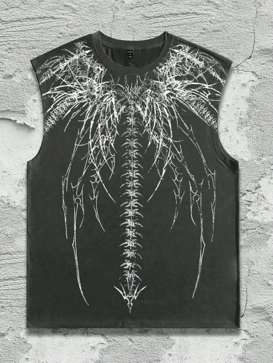 Goth Men's Casual Sleeveless Printed Tank Top