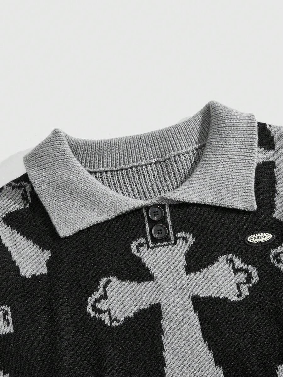 Goth Men's Casual Stylish Jacquard Cross Collar Sweater