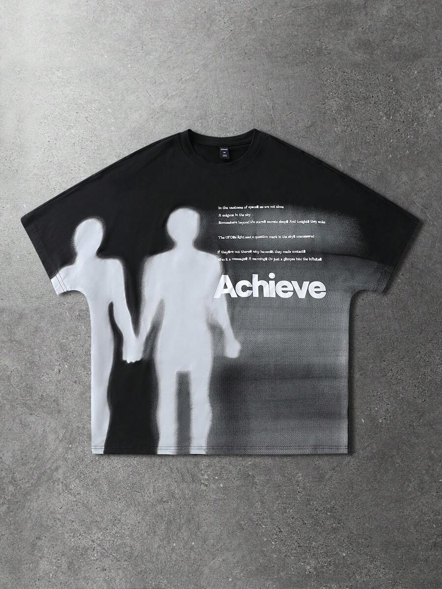 Goth Men's Fashionable Character Slogan Print Batwing Sleeve T-Shirt, Summer
