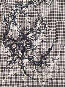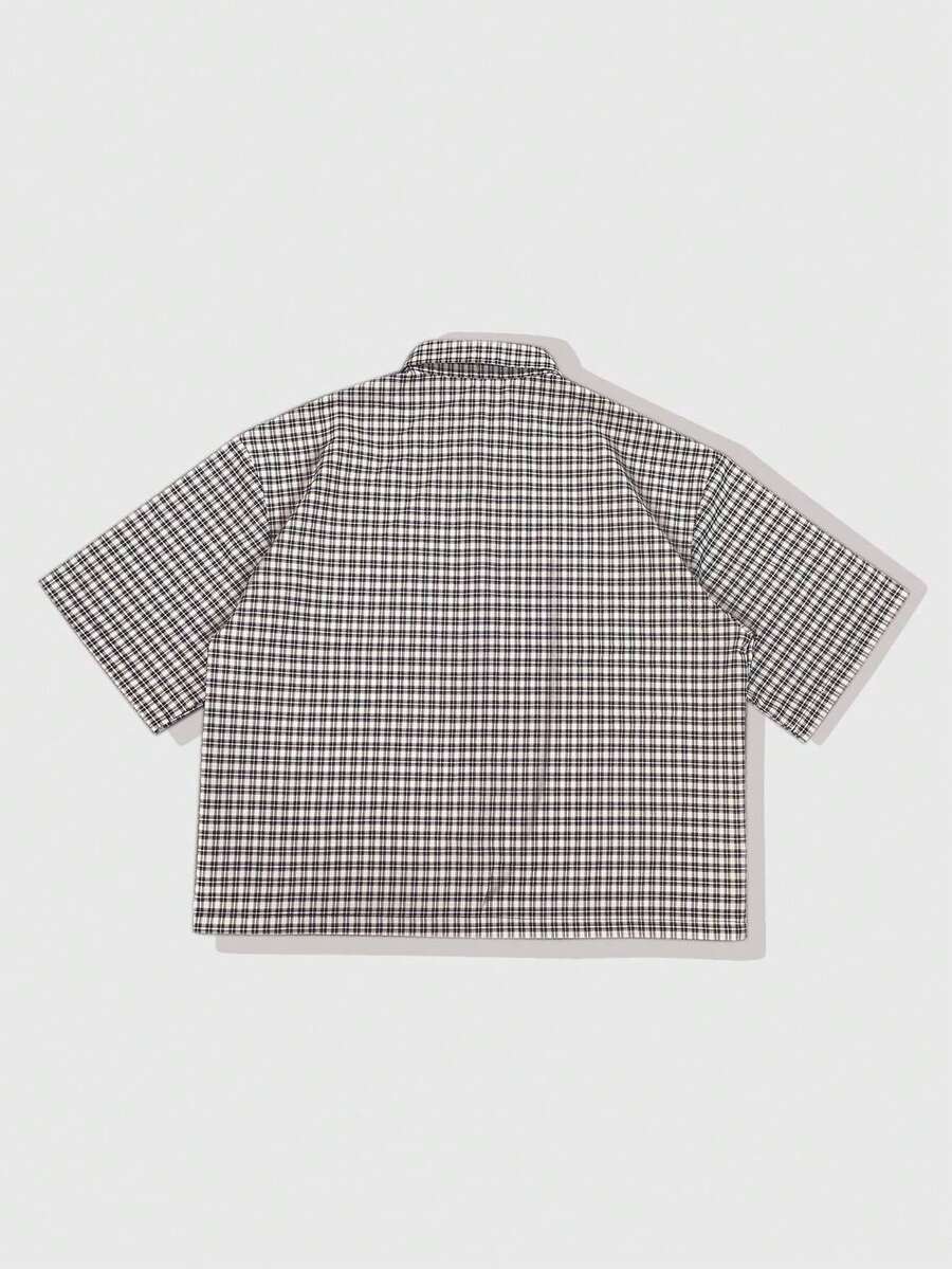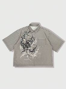 Goth Men's Plaid Short Sleeve Single-Breasted Casual Pocket Shirt