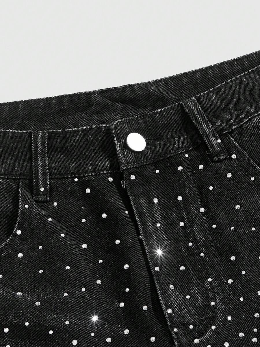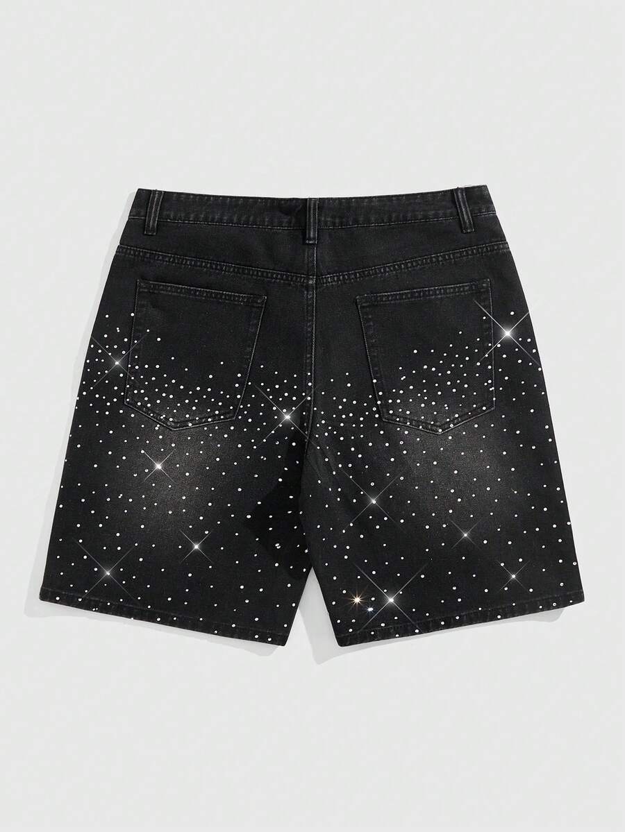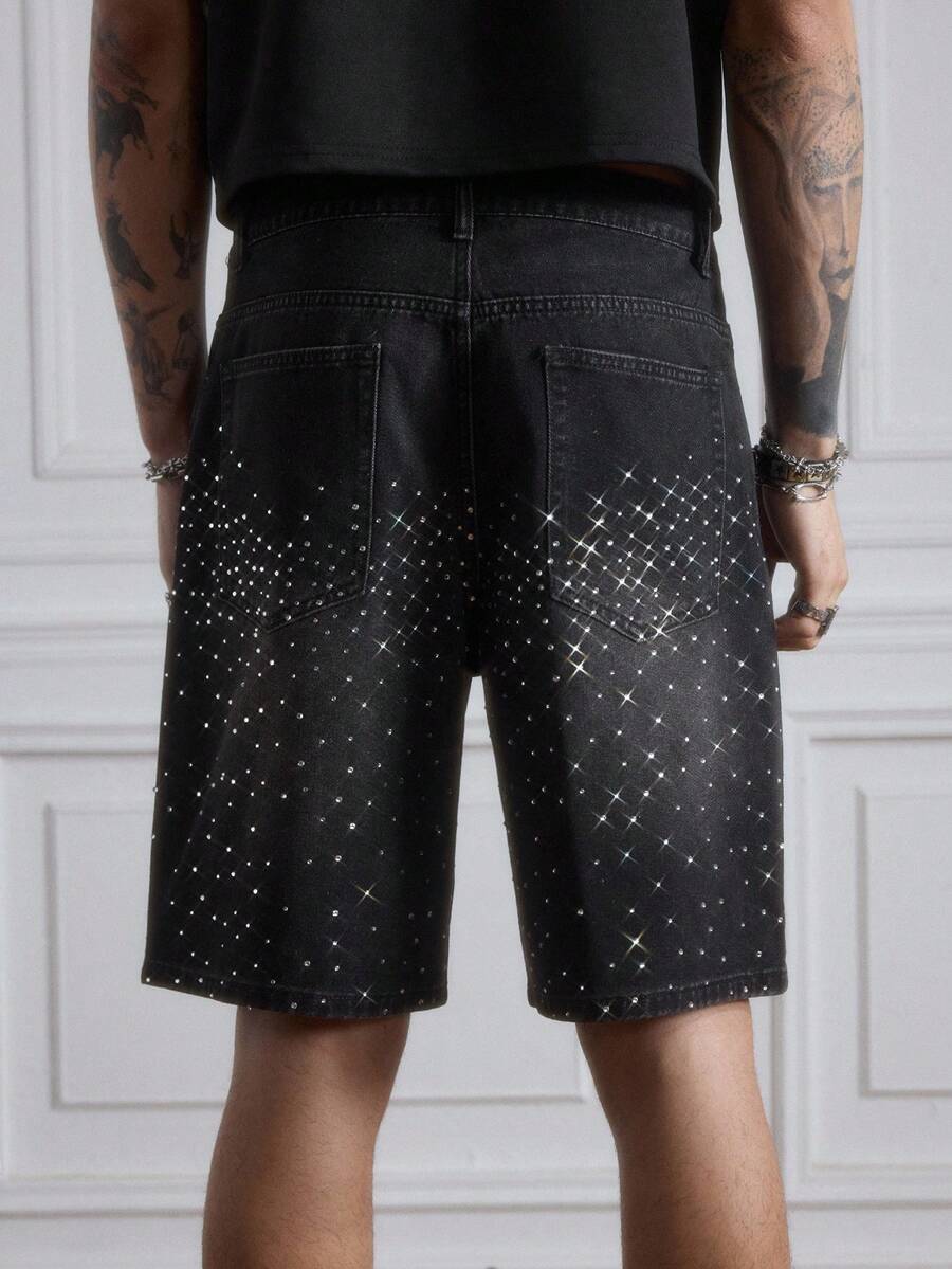 Goth Men's Pockets Rhinestone Cross Design Casual Denim Shorts, Halloween