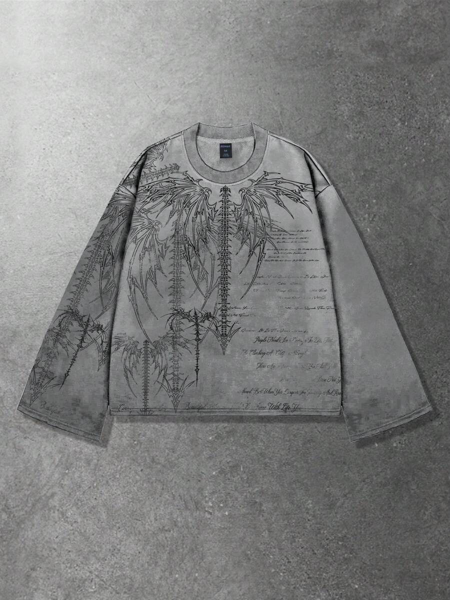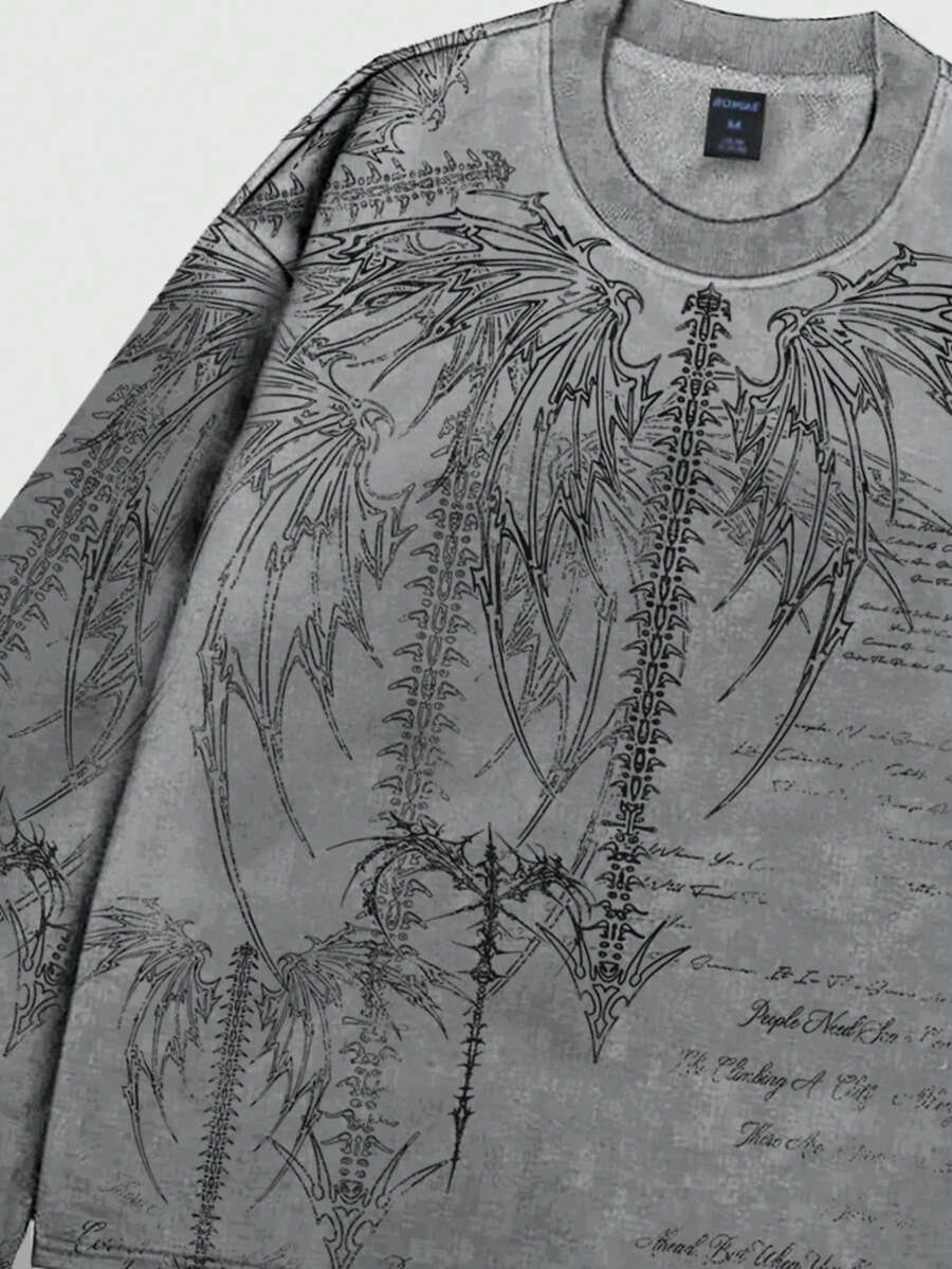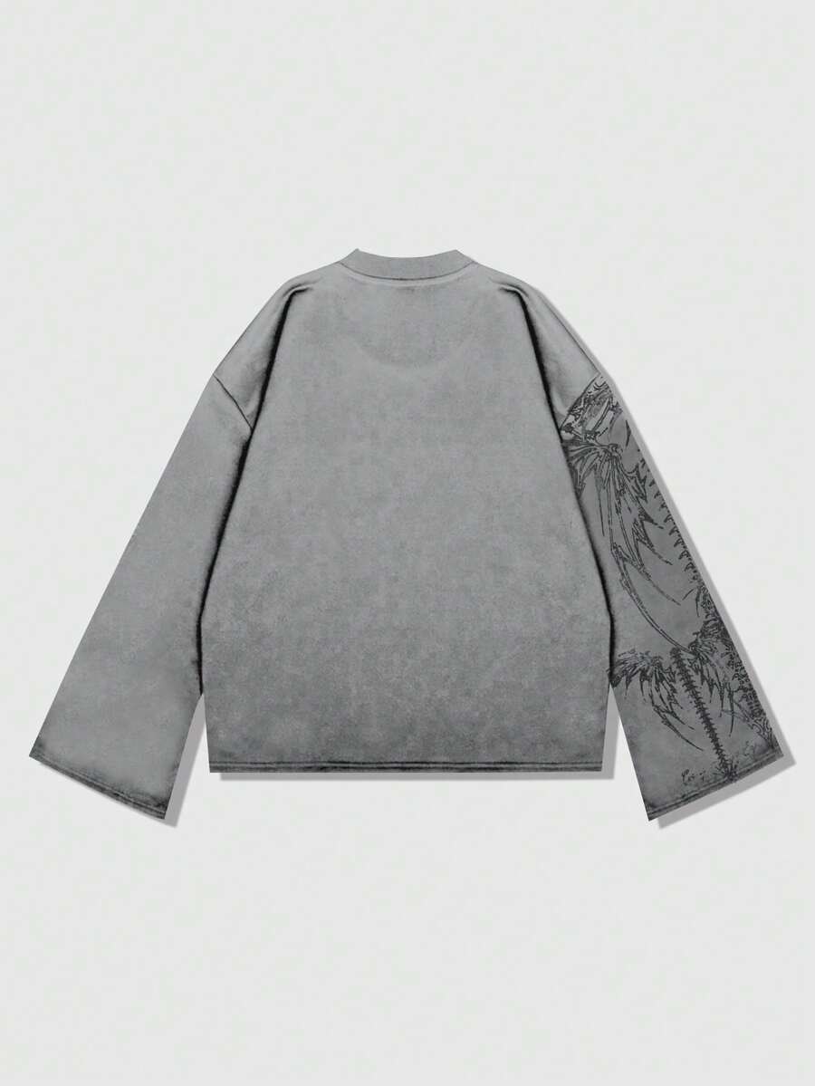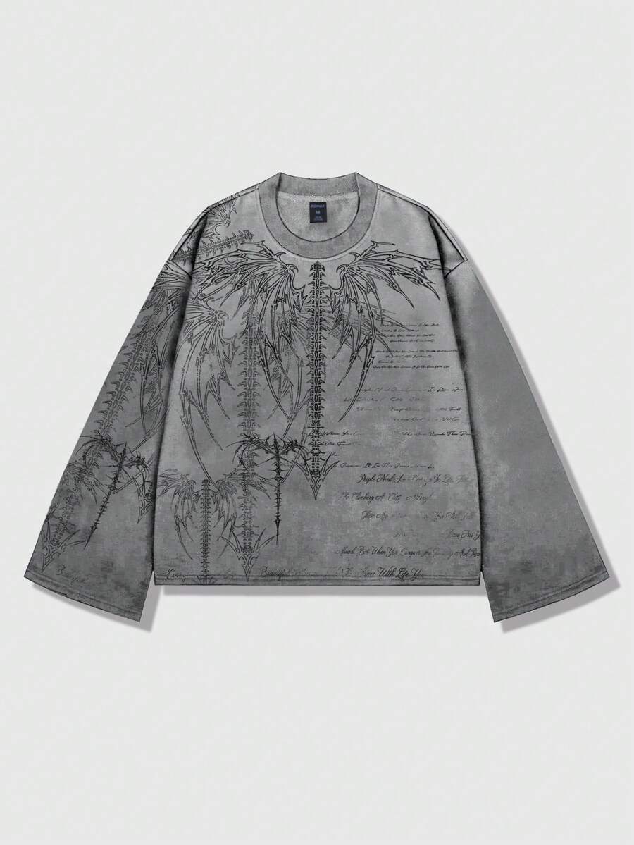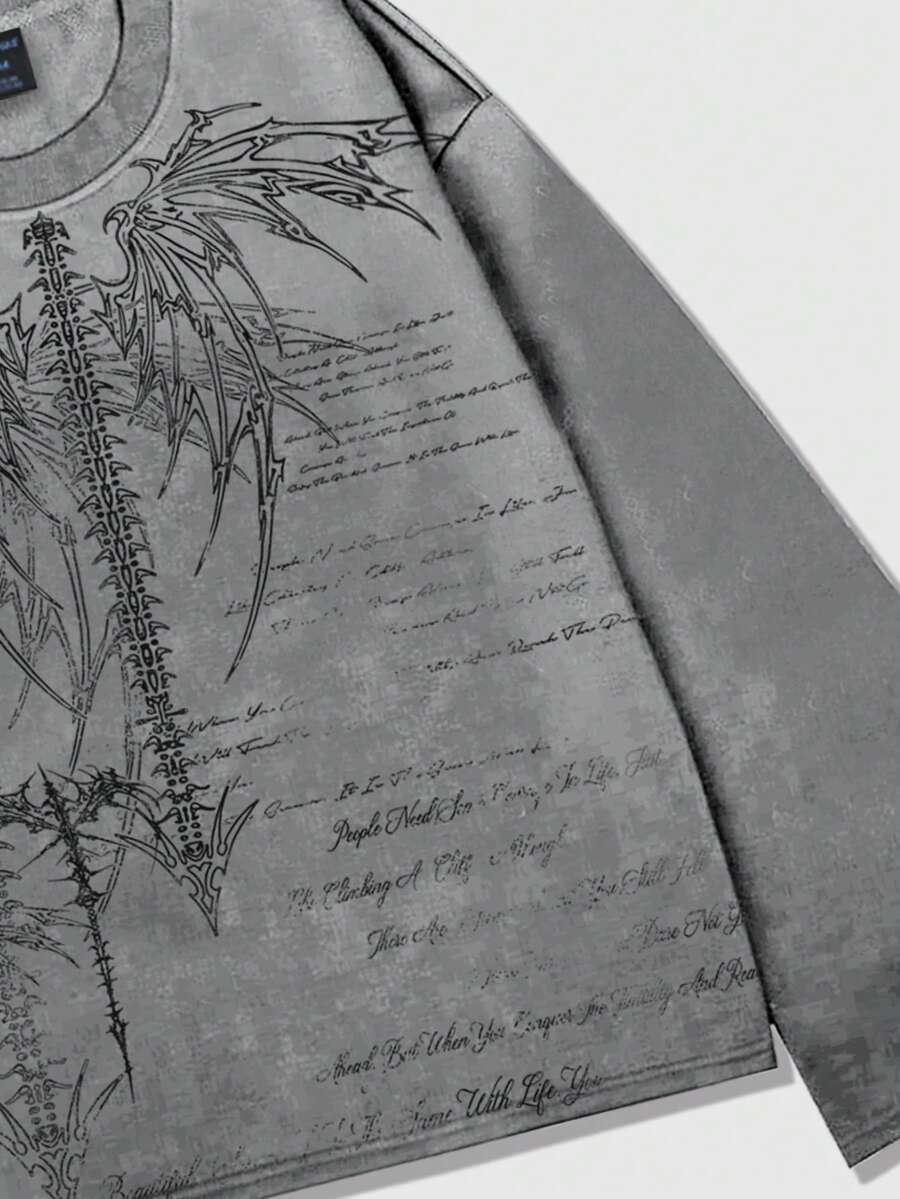 Goth Men's Punk Street Style Long Sleeve T-Shirt, Suitable For Spring And Autumn