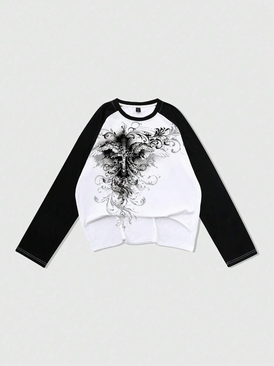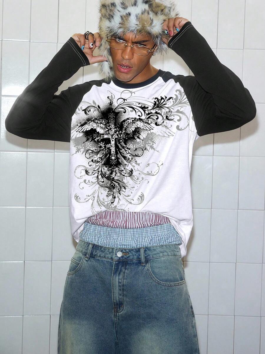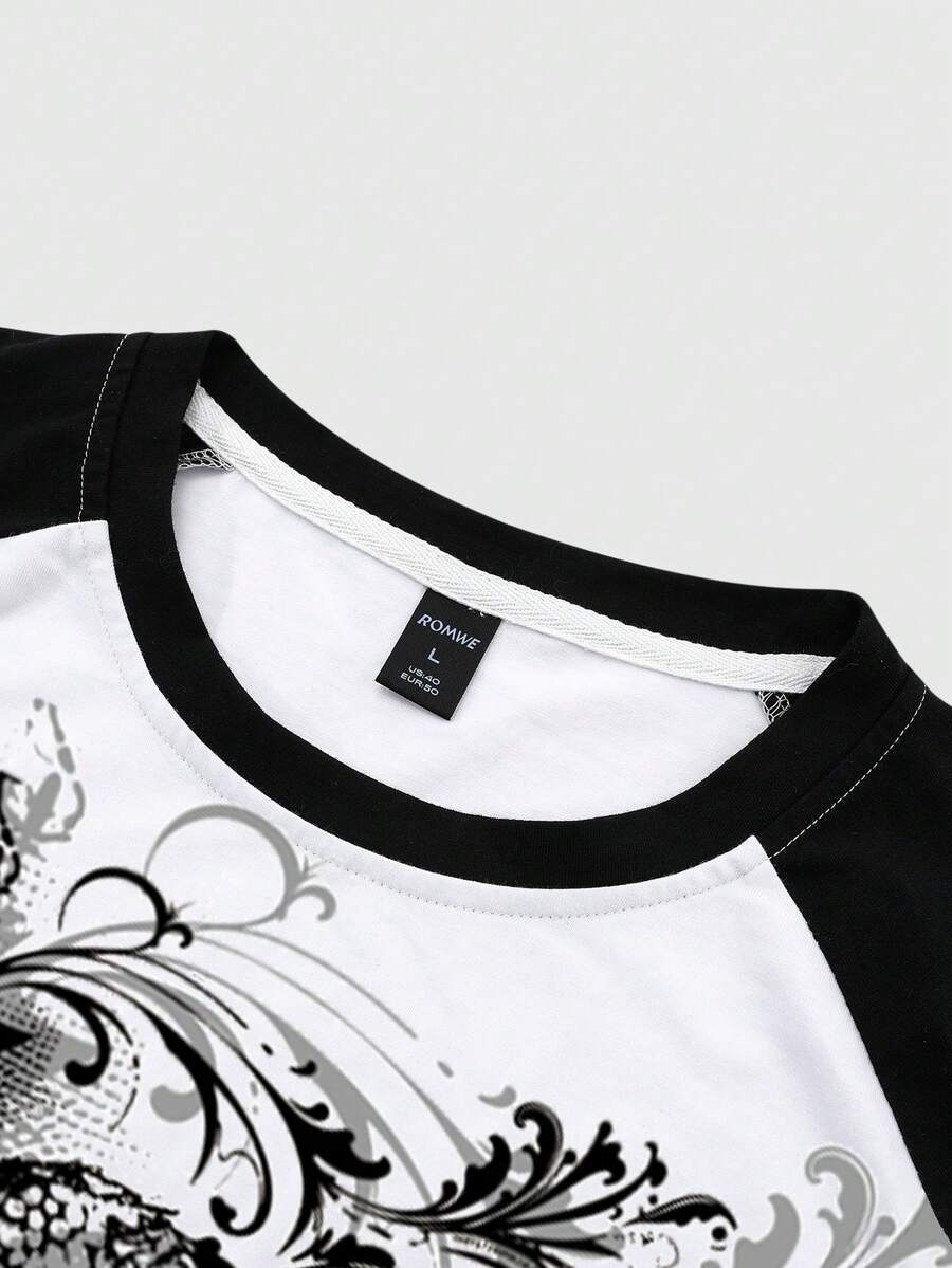 Goth Men's Raglan Sleeve T-Shirt, Classic And Stylish, Front Skull & Cross Print With Dark Elements